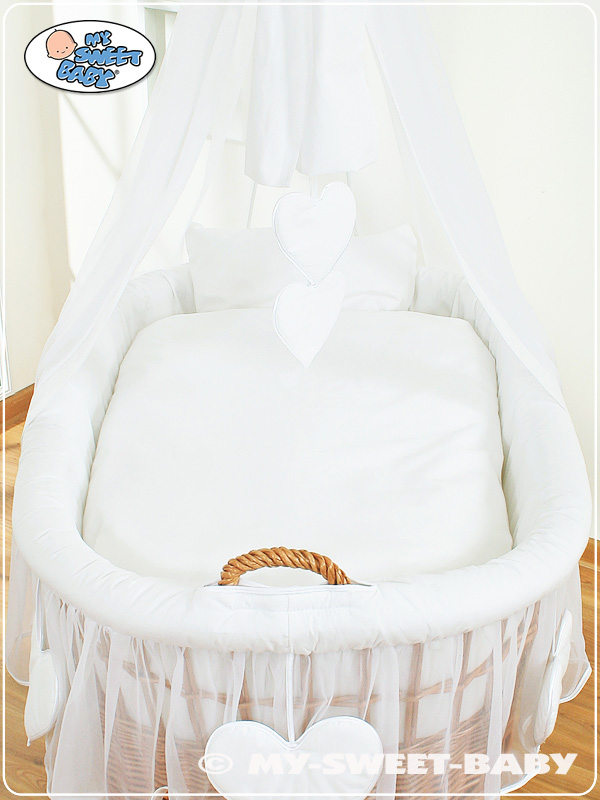 Stubenwagen mit Himmel - Amelie weiß Ein wunderschöner handgemachter Stubenwagen, der ein gemütliches, Nest bildet. Natürliche Farbe von Korb und Holz.