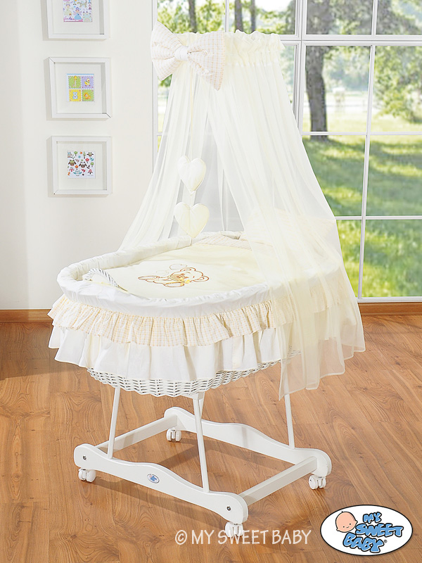 Stubenwagen mit Himmel - Bär mit Schleife creme
