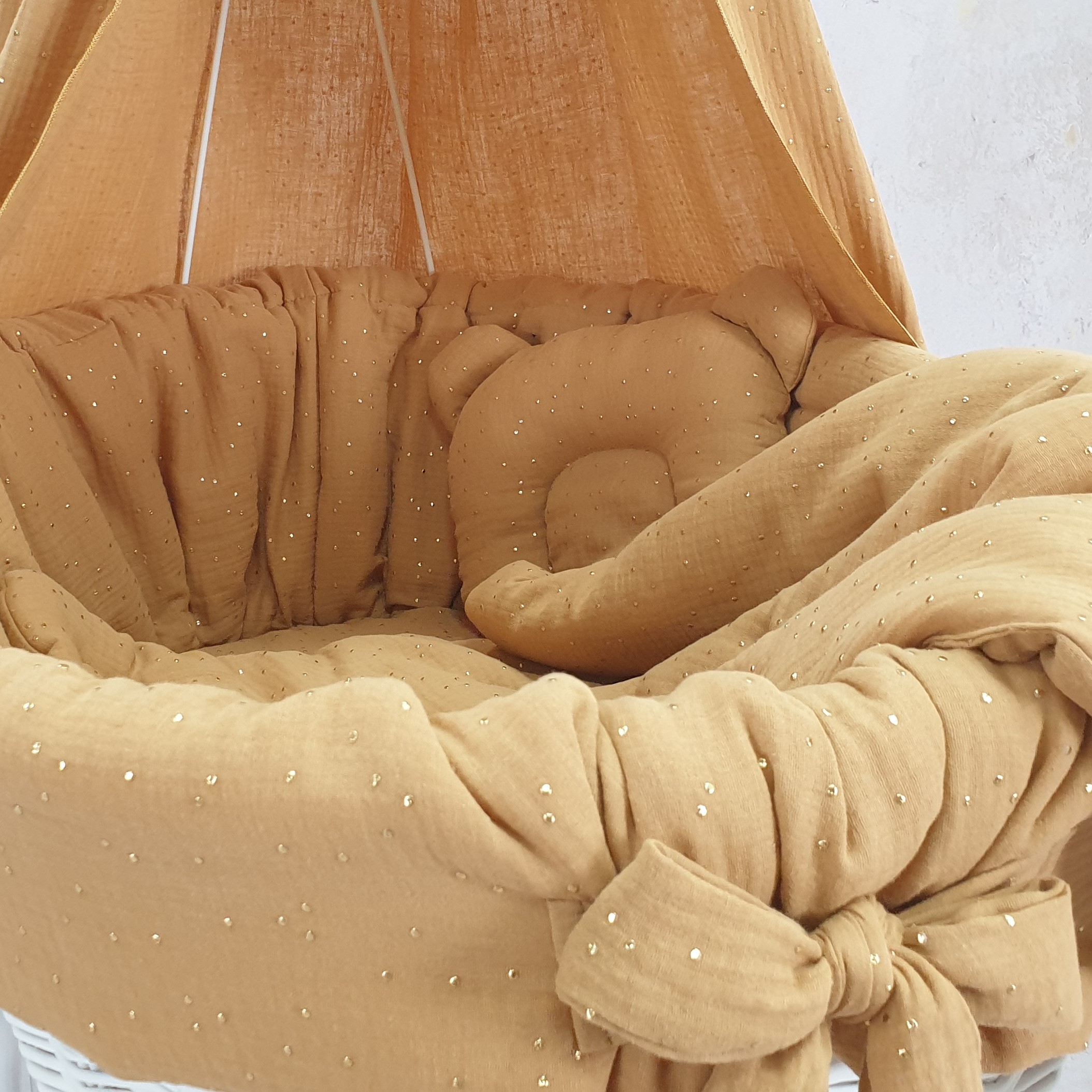 Musselin Gold Stubenwagen Ausstattung mit Himmel