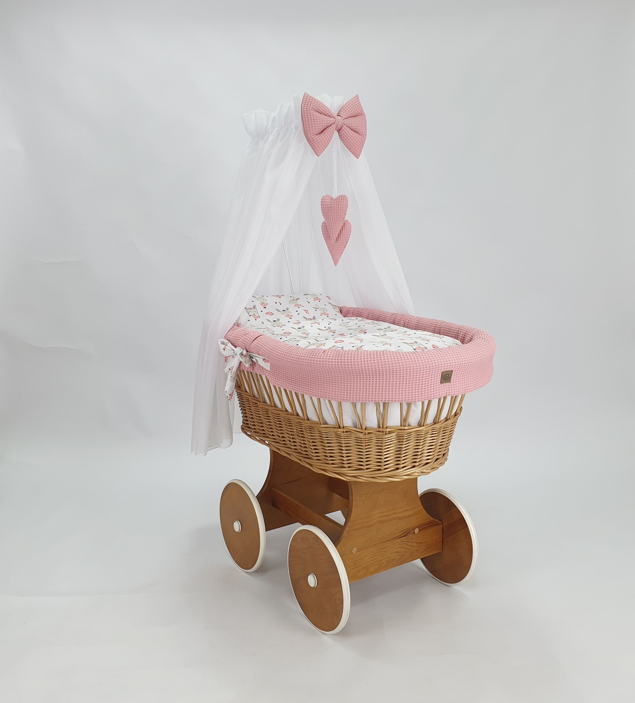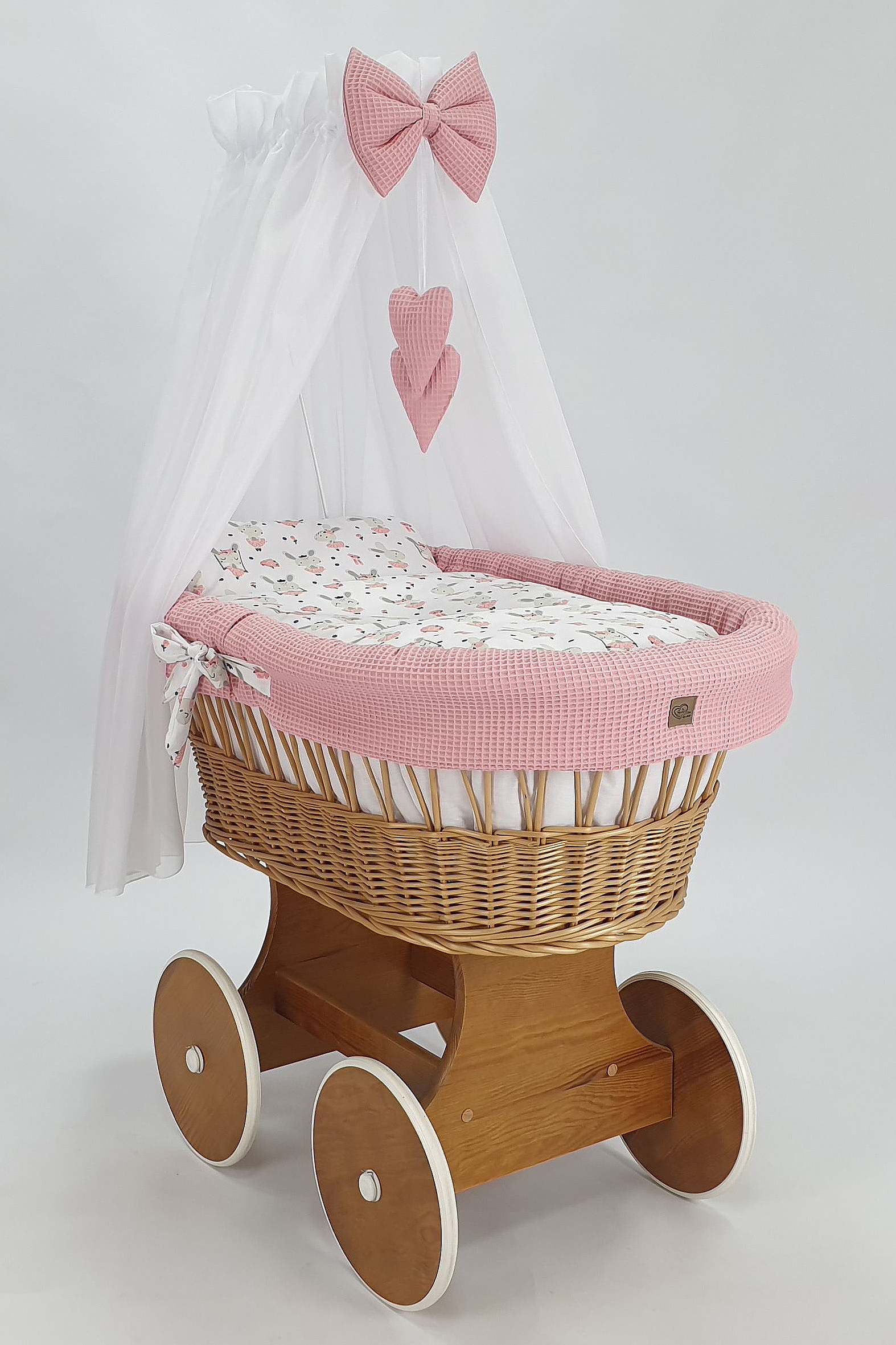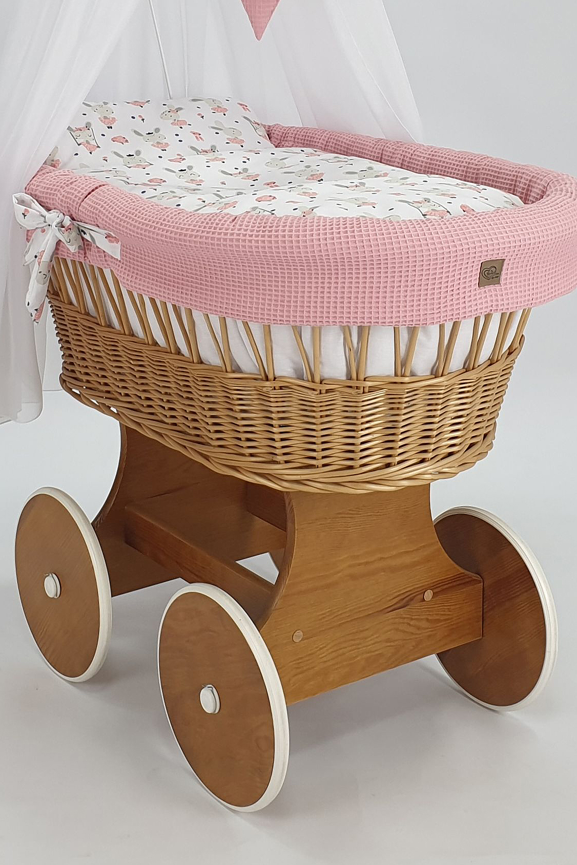 Handgefertigte Perfektion: Jeder Stubenwagen wird von Hand aus natürlichem, hochwertigem polnischem Weidenholz geflochten und mit einer sicheren, umweltfreundlichen Farbe für Kinder bemalt. Dieses traditionelle Handwerk macht jeden Wagen zu einem Unikat, das mit Liebe zum Detail gefertigt wird.