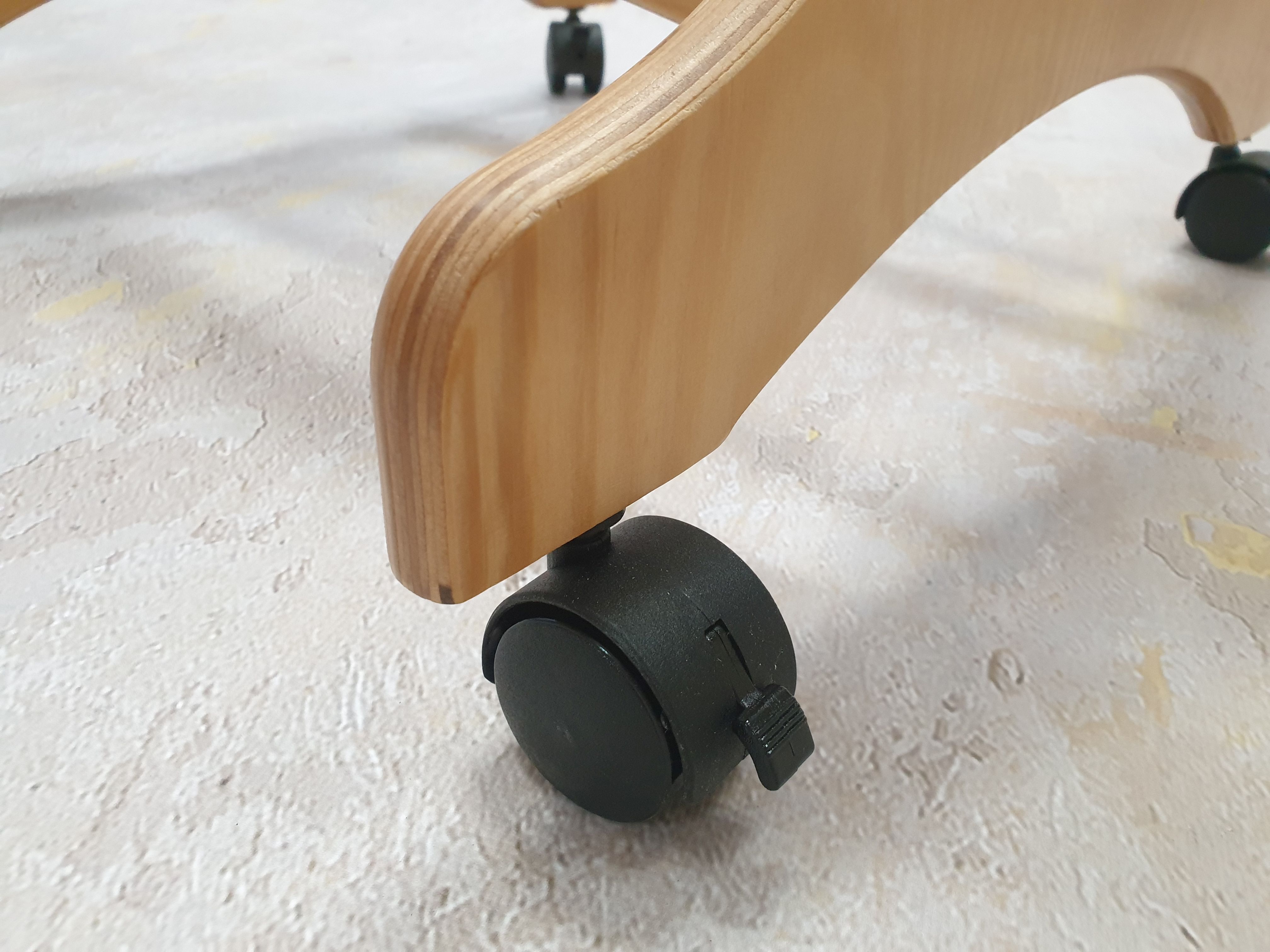 - Gestell in Holzfarbe auf 4 Rollen mit Bremsen