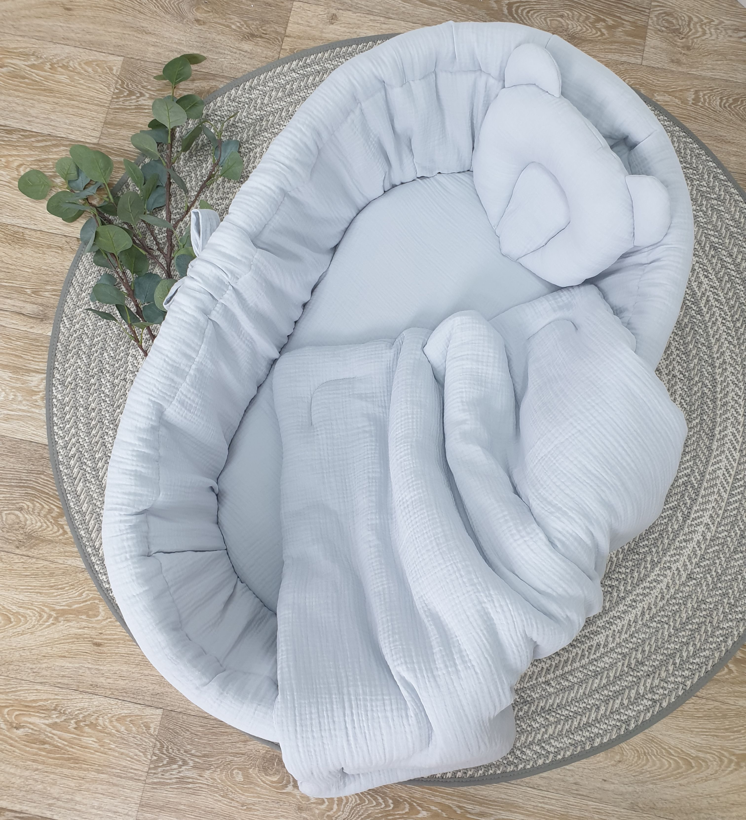 Hellgrau Bettset in Musselin für Stubenwagen ohne Himmel