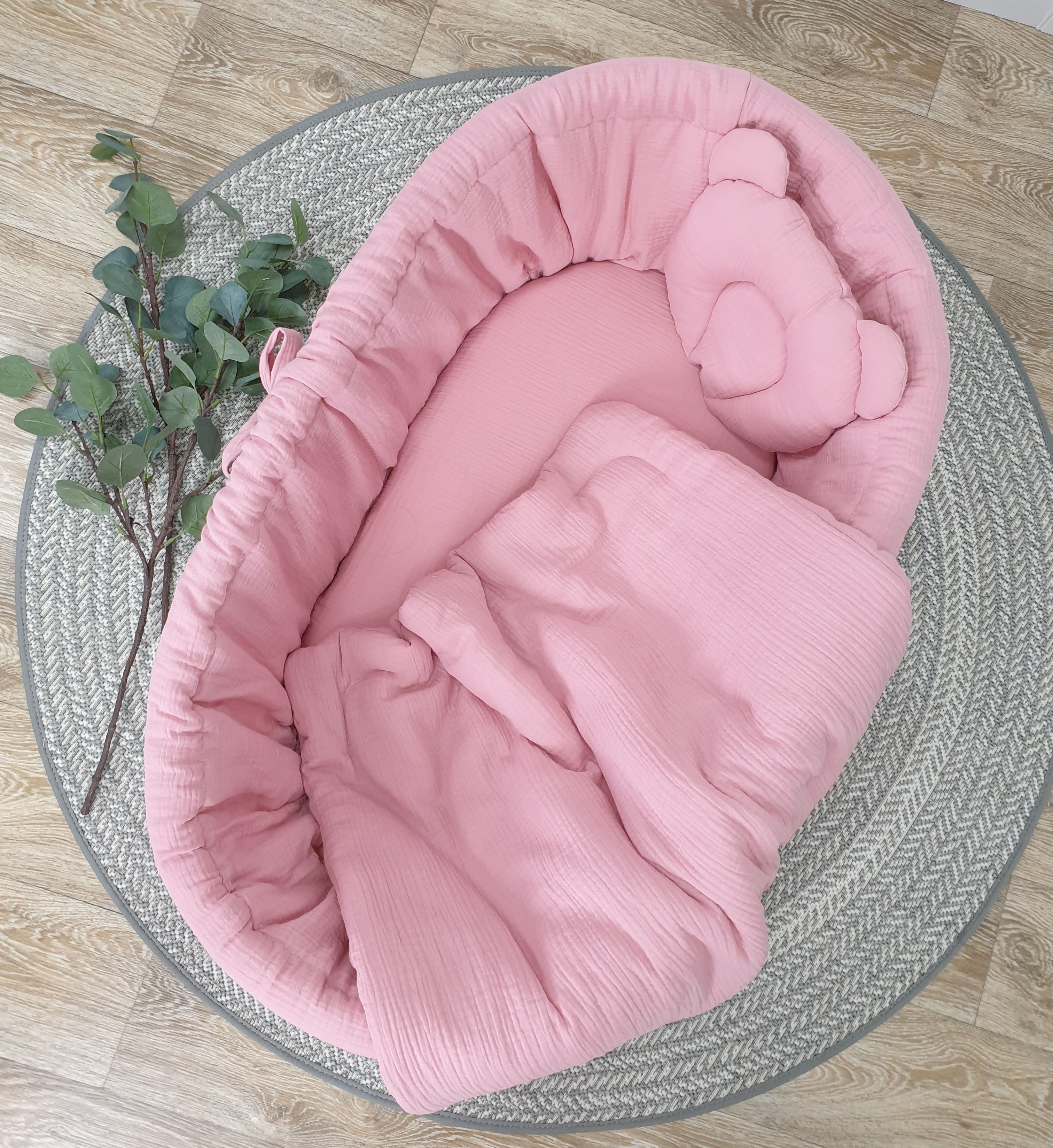 Bettset aus Musselin Rosa für Weidenkorb ohne Himmel