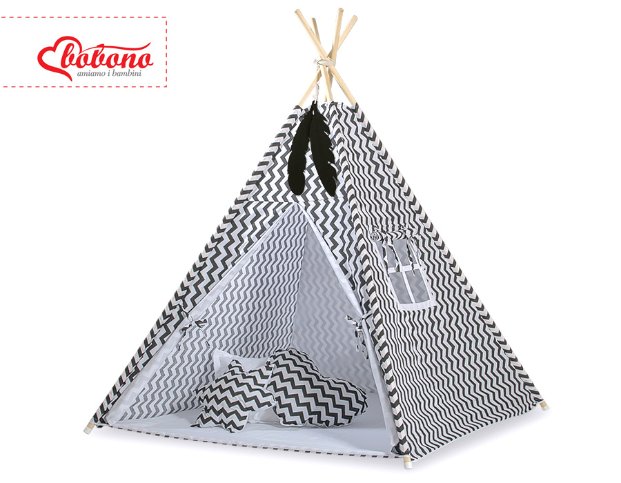 Teepee Kinderspiel-Zelt + Schmuckfedern GRATIS! - Chevron schwarz