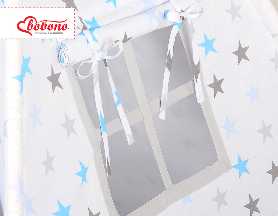 Stubenwagen » Spielzeug Kuscheltiere » Teepee Kinderspiel-Zelt » Teepee Kinder Spielzelt » Teepee Kinderspiel-Zelt + Schmuckfedern GRATIS! - Grau-blaue Sternen/grau