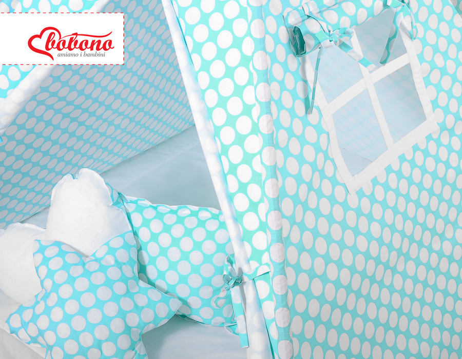 Stubenwagen » Spielzeug Kuscheltiere » Teepee Kinderspiel-Zelt » Teepee Kinder Spielzelt » Teepee Kinderspiel-Zelt + Schmuckfedern GRATIS! - türkis Punkt-Muster