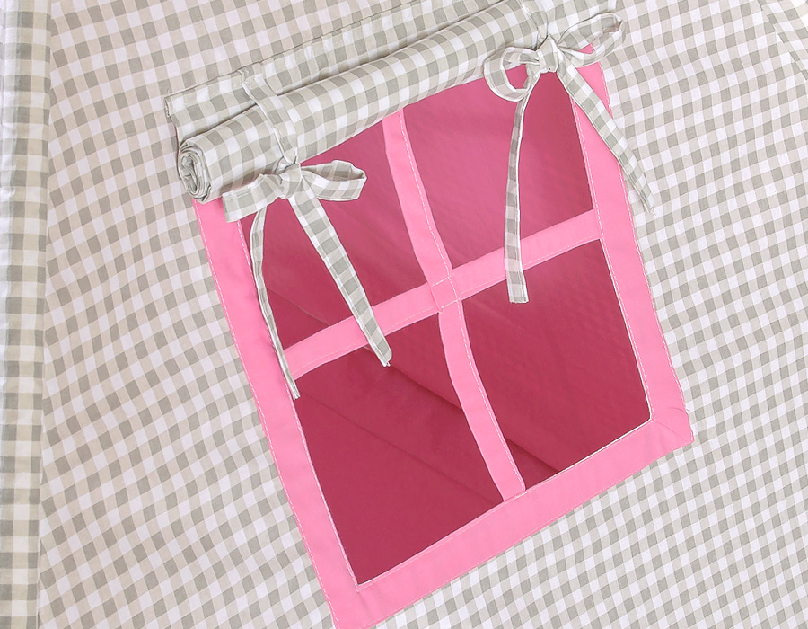 Teepee Zelt mit Spielmatte und Schmuckfedern GRATIS! - Grau kariert-rosa