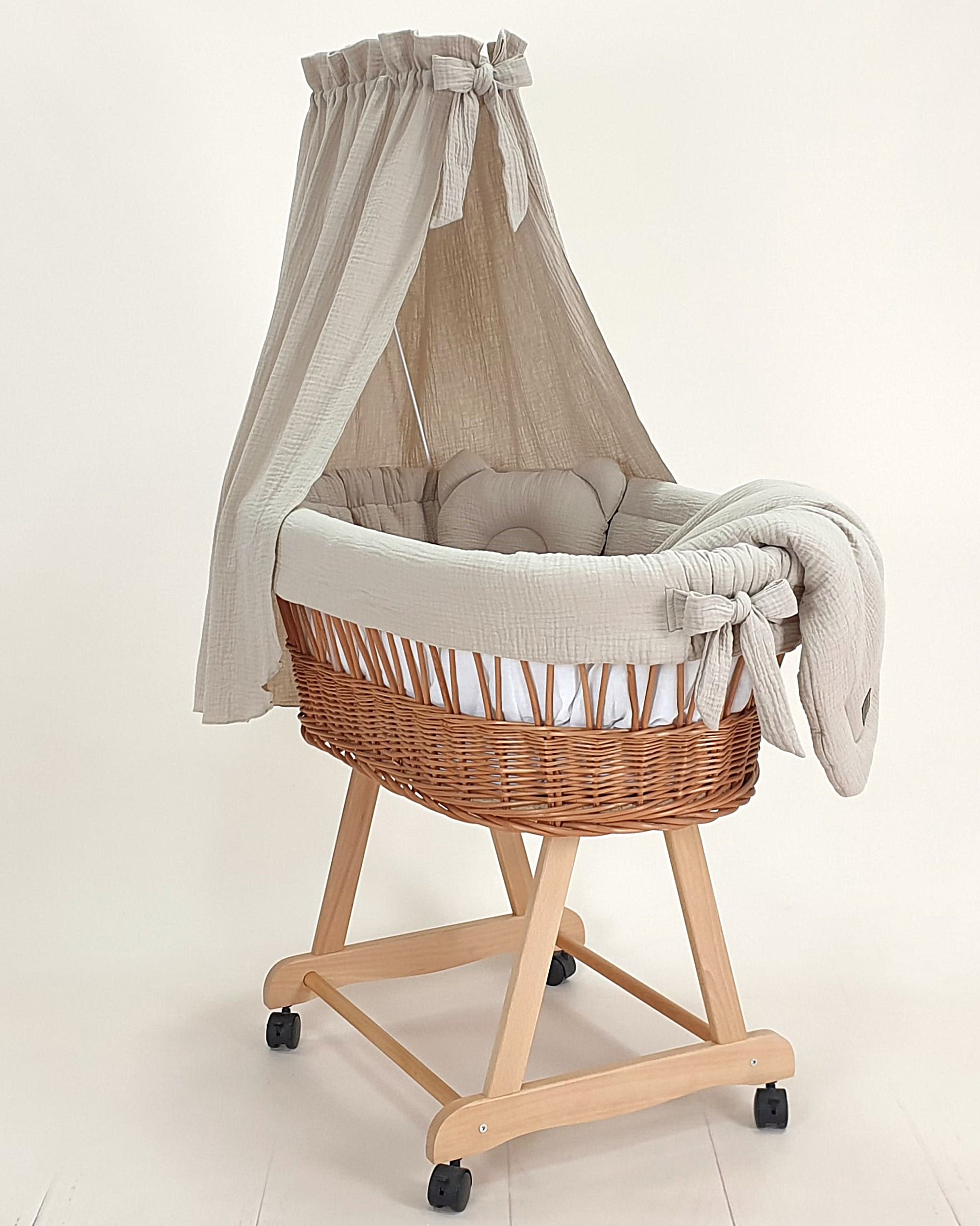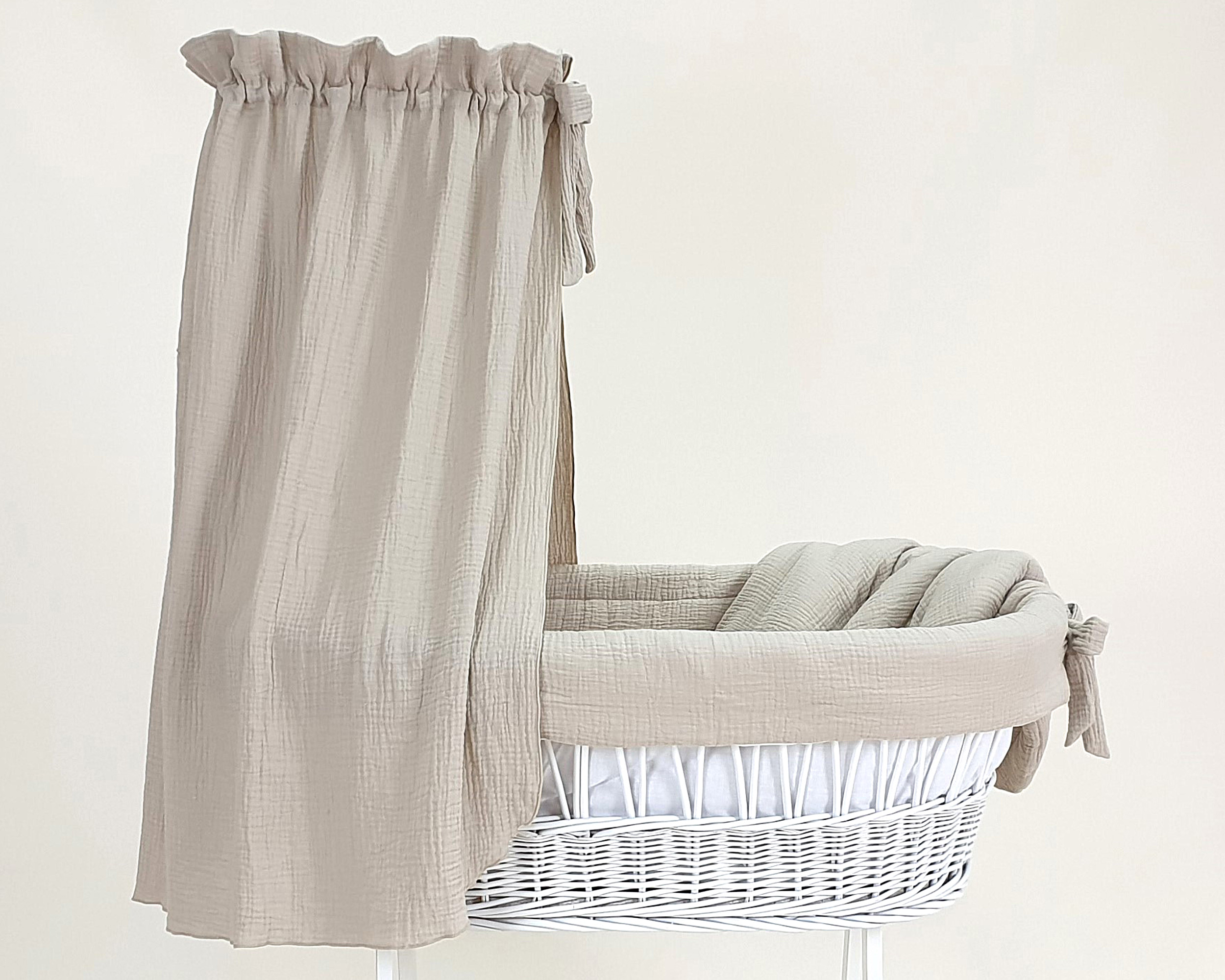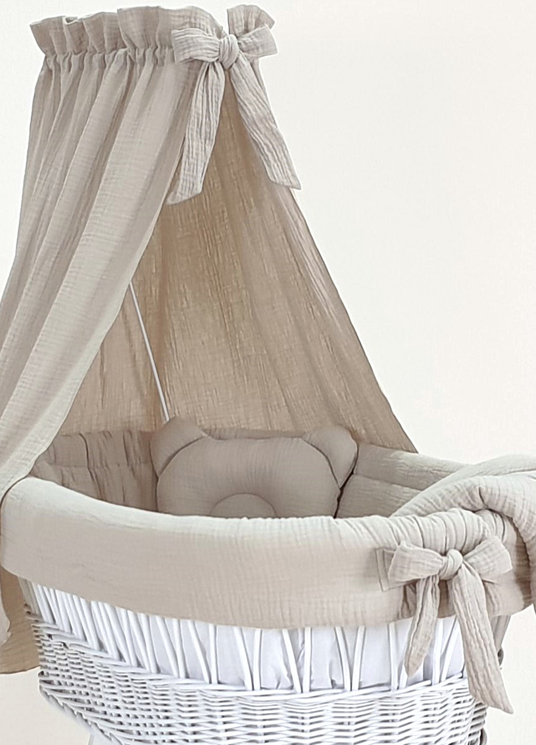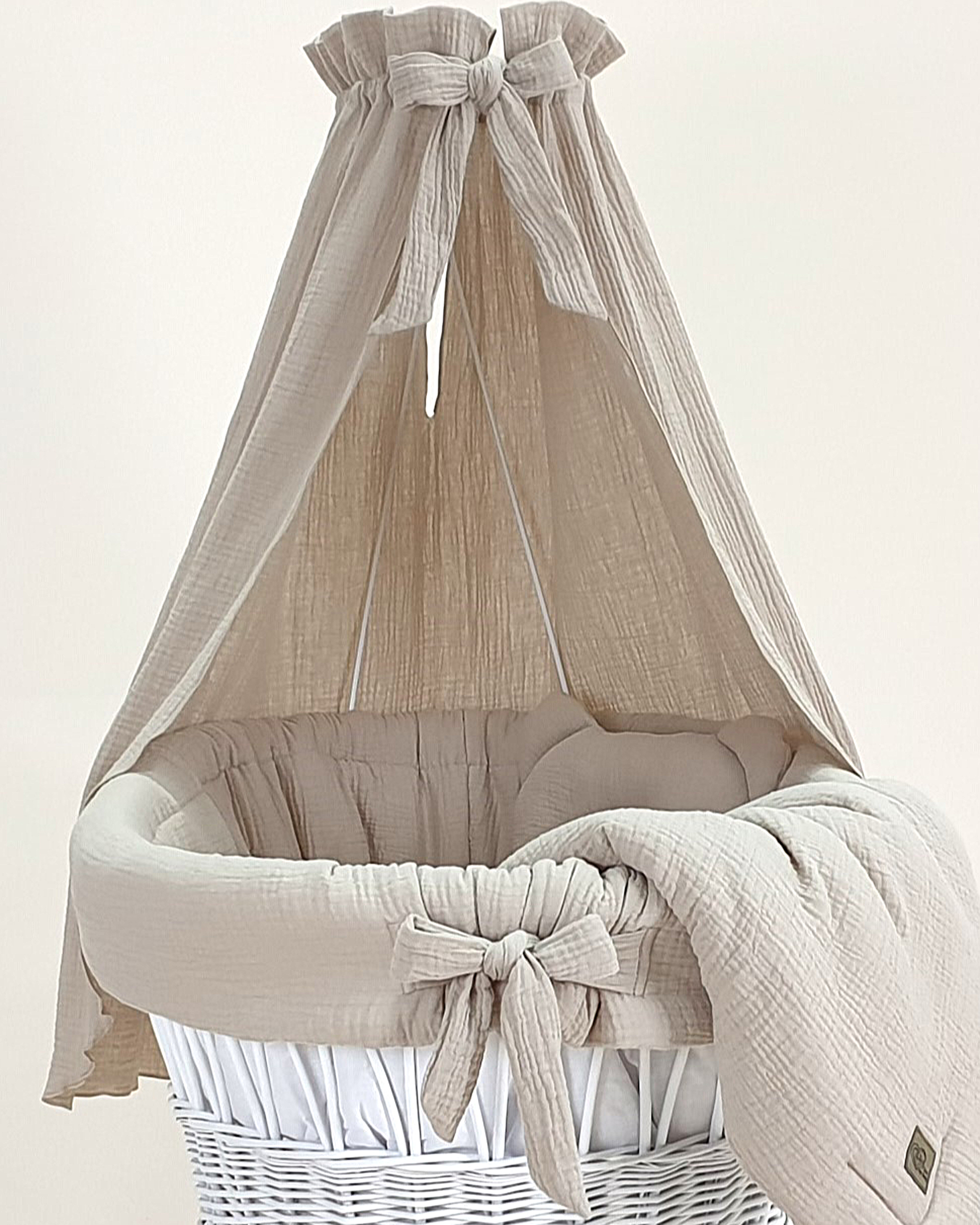 Verleihen Sie Ihrem Stubenwagen einen neuen, stilvollen Look und schaffen Sie einen gemütlichen Schlafplatz für Ihr Baby mit unserem kompletten Textilset aus weichem, atmungsaktivem Musselin in der Farbe Beige. Dieses hochwertige Set enthält alles, was Sie benötigen, um Ihren Stubenwagen zu erneuern und Ihrem Kind Komfort sowie Sicherheit zu bieten.