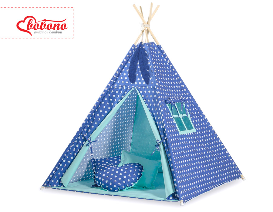 Tipi Zelt für Kinder + Schmuckfedern GRATIS! - Dunkelblaue Sternchen