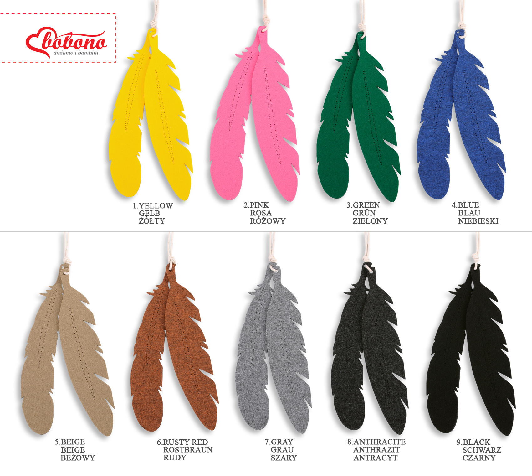 Zwei große Schmuckfedern aus Filz zu jedem Zelt.