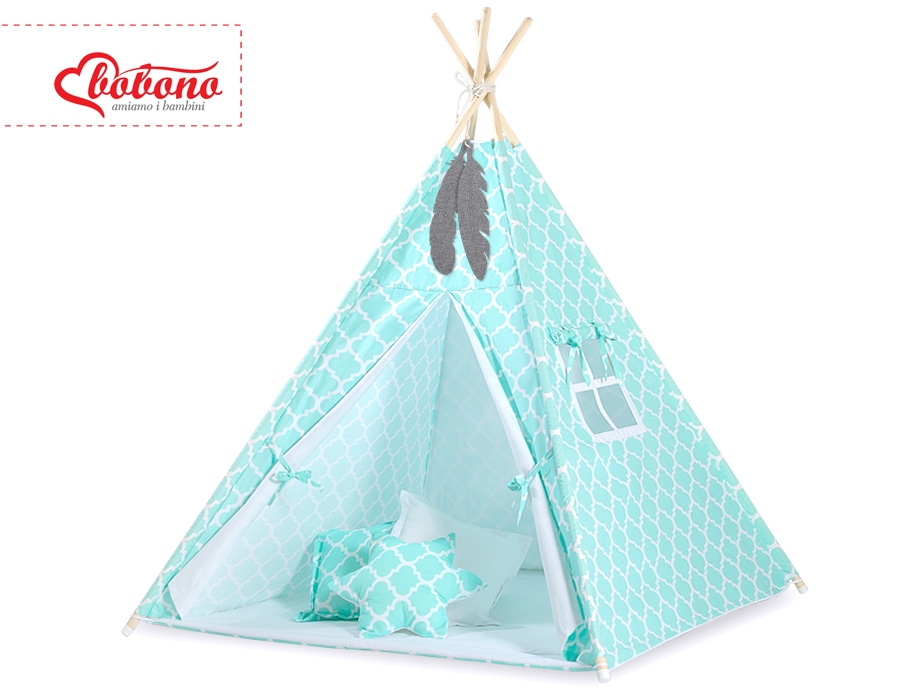 Tipi Zelt für Kinder + Schmuckfedern GRATIS! - Marokko minze