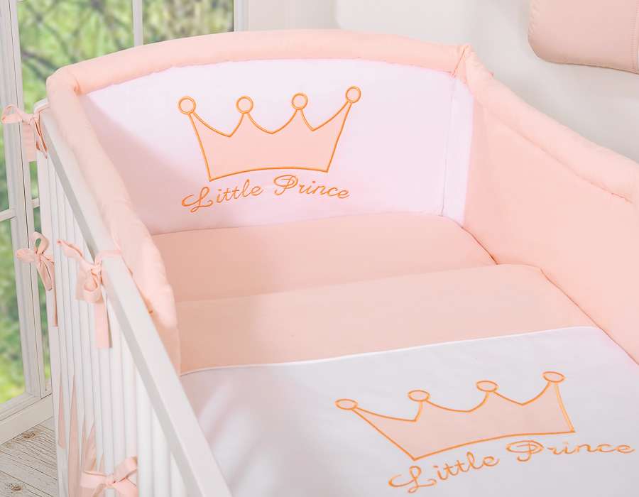 Stubenwagen » Bettwäsche für Babys » Bettwäsche für Babybett Kollektion LITTLE PRINCE / PRINCESS » Bettwäsche Sets für Babybett 120cm » Universal Kopfschutz » Universal Babybett Kopfschutz - Little Prince/Princess puderrosa