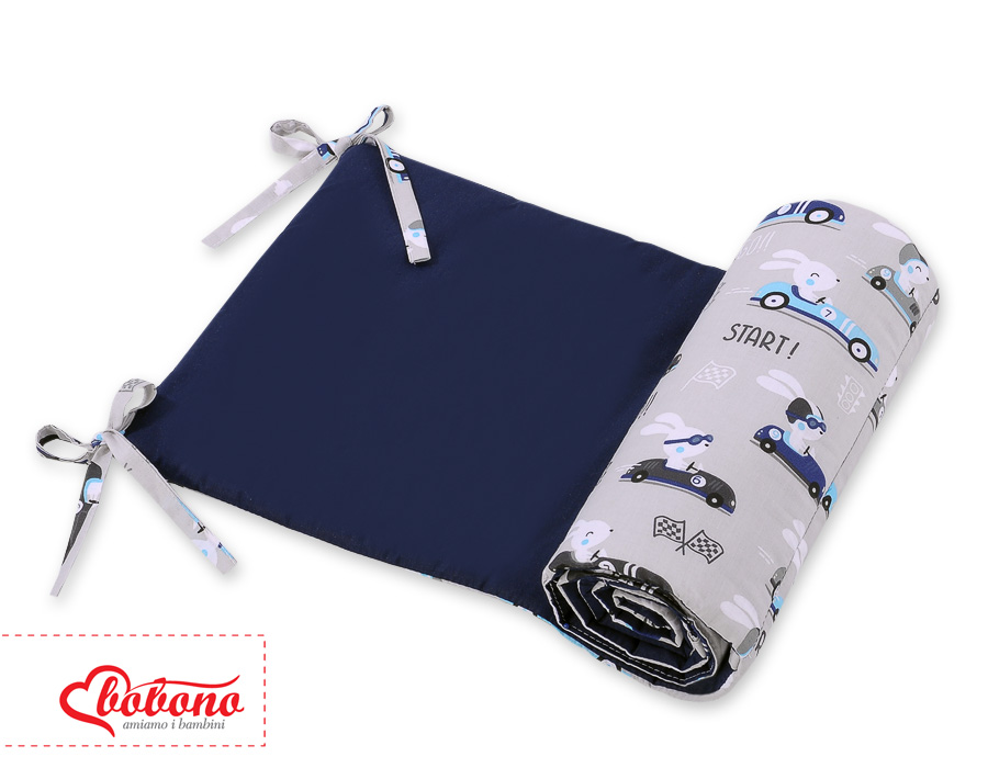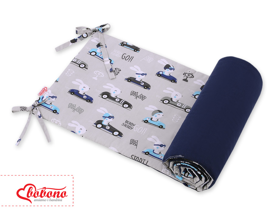 Universal Bettumrandung für Babybett - Hasen grau Ein universal, atmungsaktiver Kopfschutz für Kinderbett. Schafft mit der passenden Bettwäsche eine behagliche Schlafhöhle.