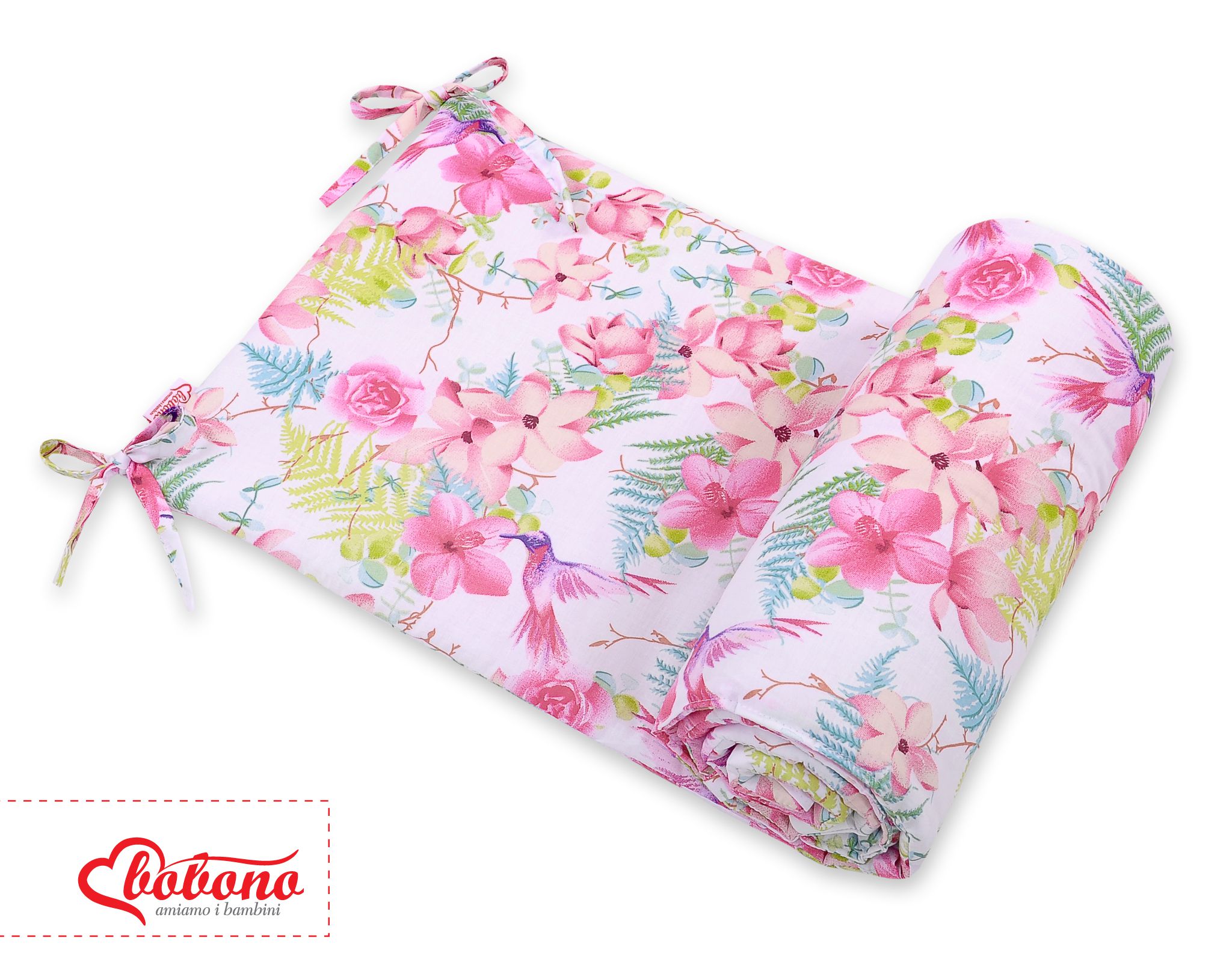 Universal Bettumrandung für Babybett - Kolibri in Blumen Ein universal, atmungsaktiver Kopfschutz für Kinderbett. Schafft mit der passenden Bettwäsche eine behagliche Schlafhöhle.