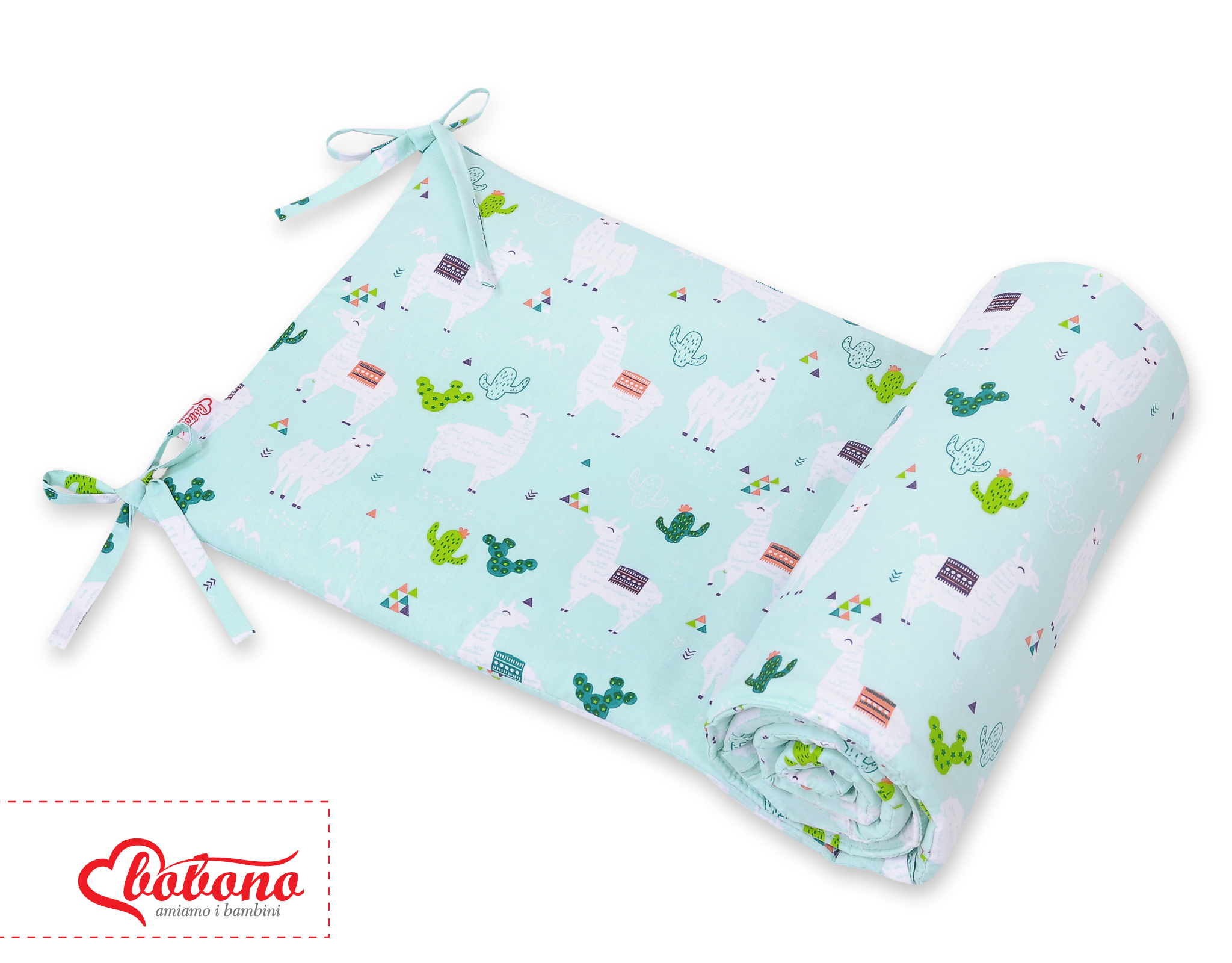 Universal Bettumrandung für Babybett - Lamas minze Ein universal, atmungsaktiver Kopfschutz für Kinderbett. Schafft mit der passenden Bettwäsche eine behagliche Schlafhöhle.