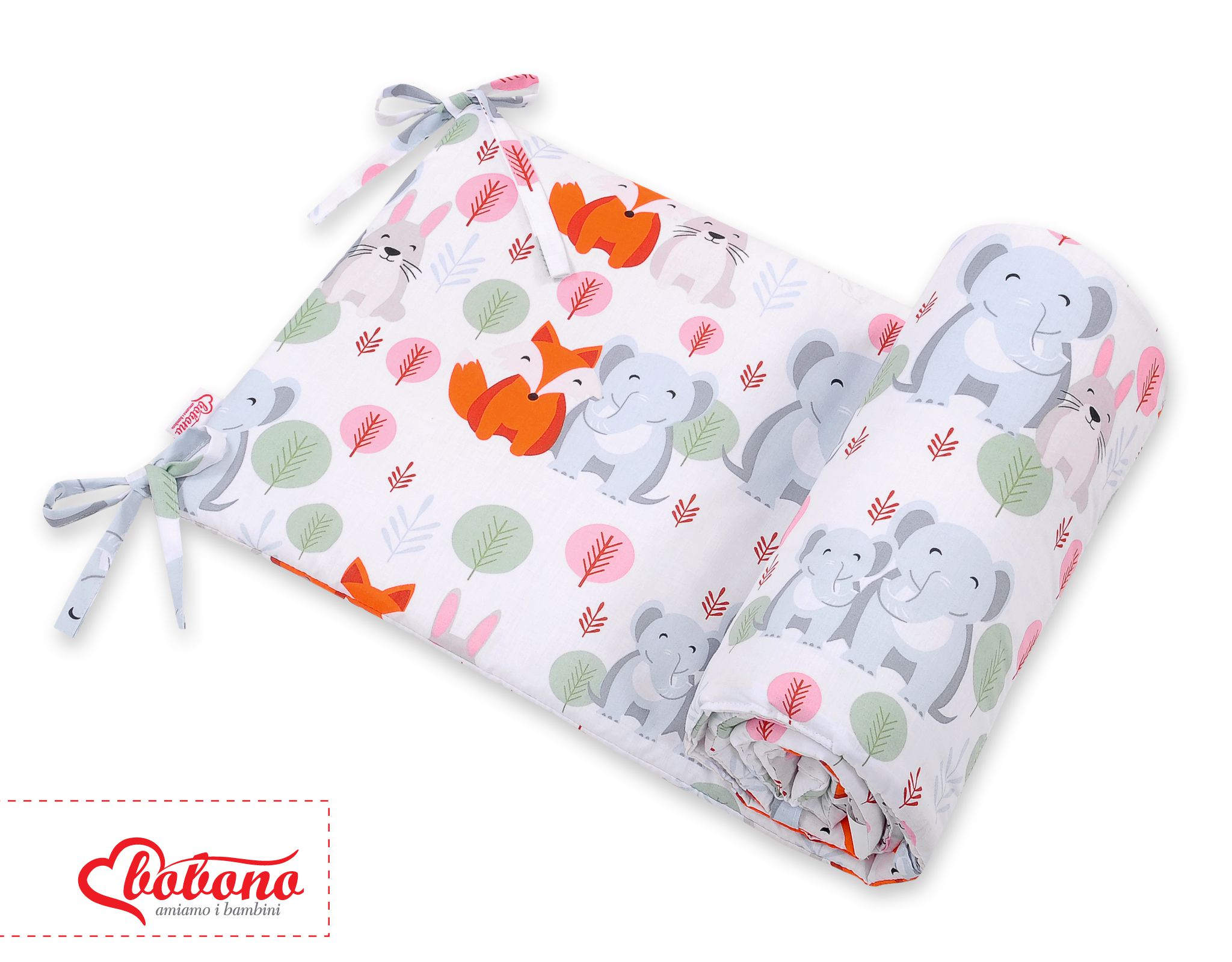 Universal Bettumrandung für Babybett - lustige Elefanten Ein universal, atmungsaktiver Kopfschutz für Kinderbett. Schafft mit der passenden Bettwäsche eine behagliche Schlafhöhle.