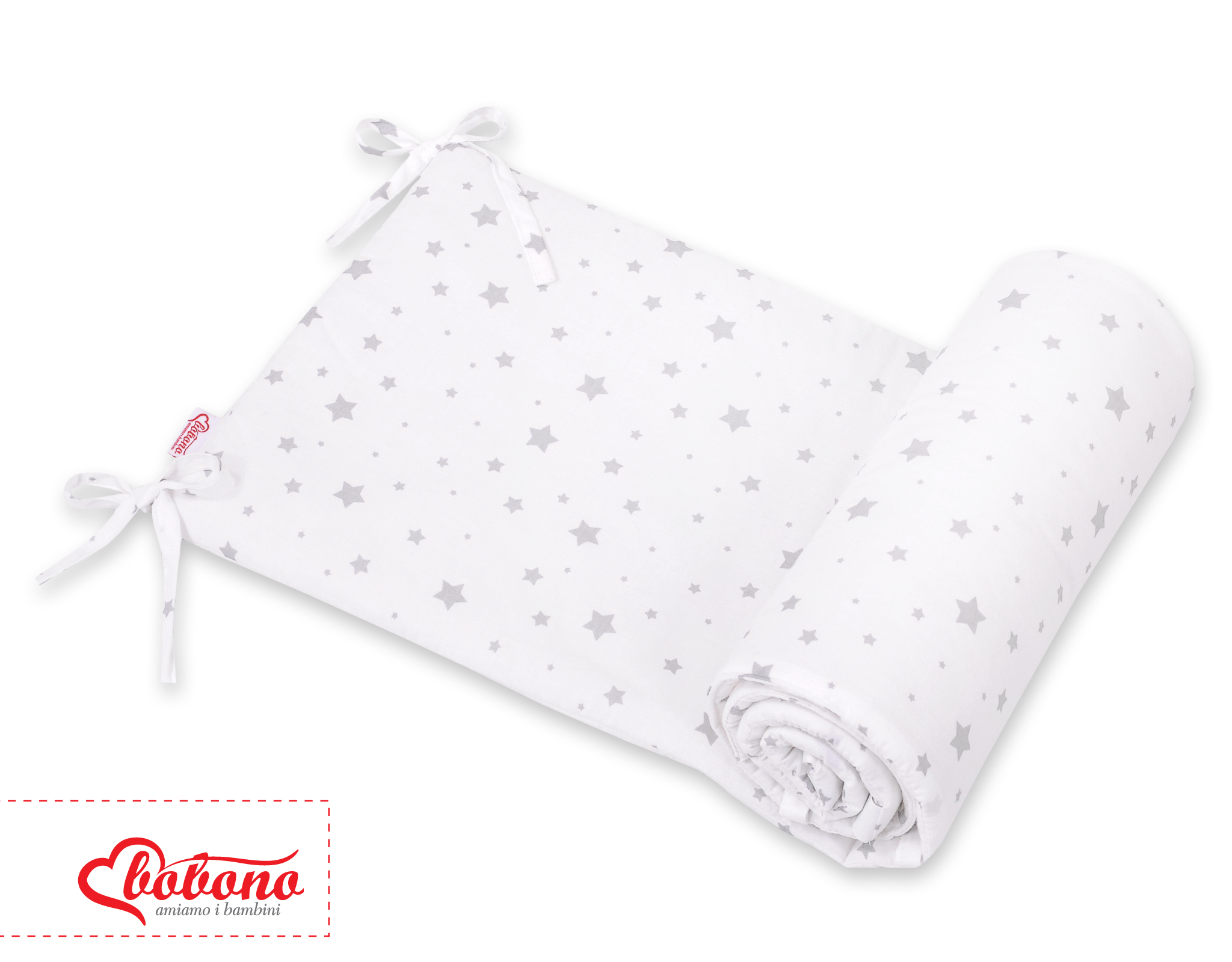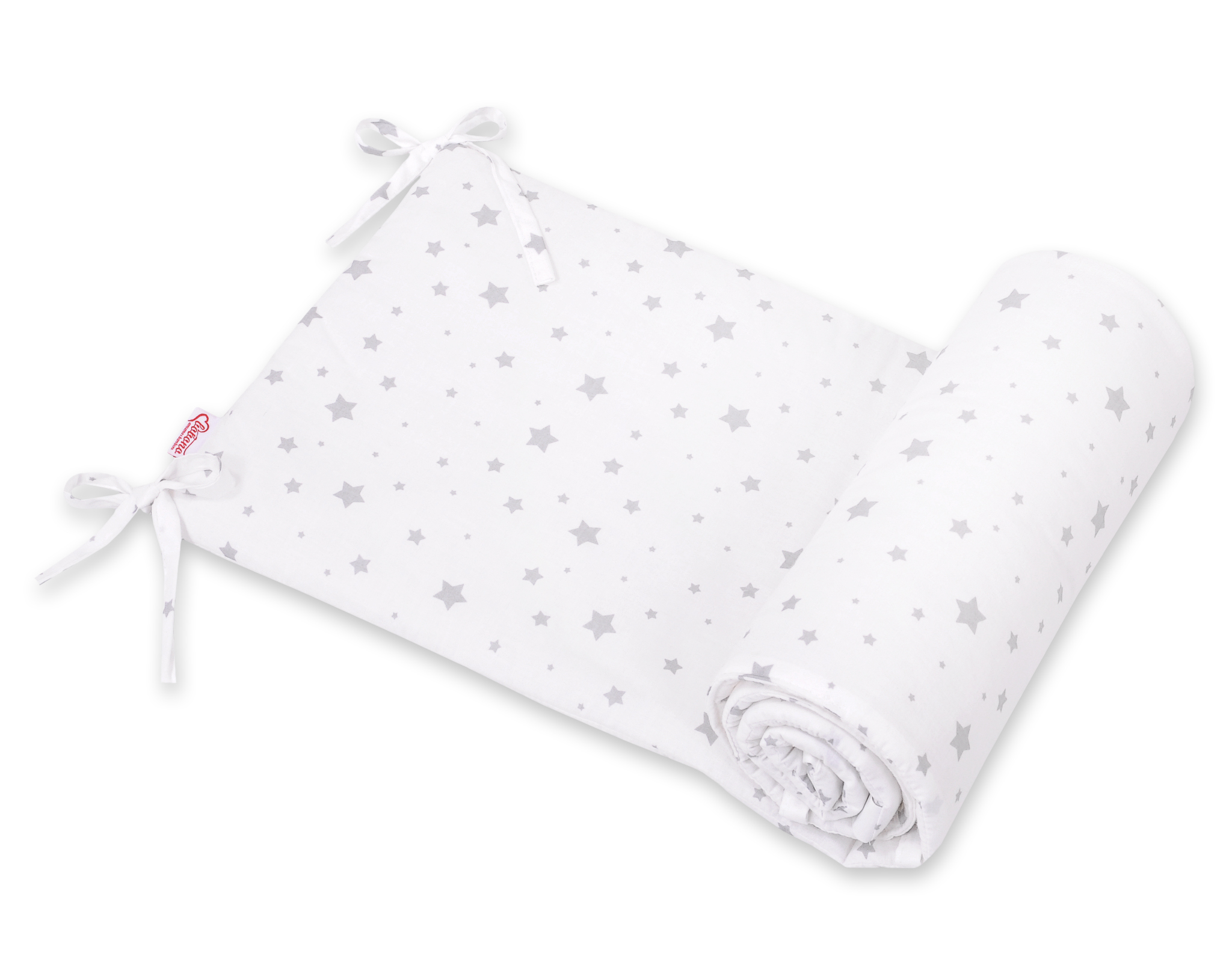Universal Bettumrandung für Babybett - Mini Sternchen grau Ein universal, atmungsaktiver Kopfschutz für Kinderbett. Schafft mit der passenden Bettwäsche eine behagliche Schlafhöhle.