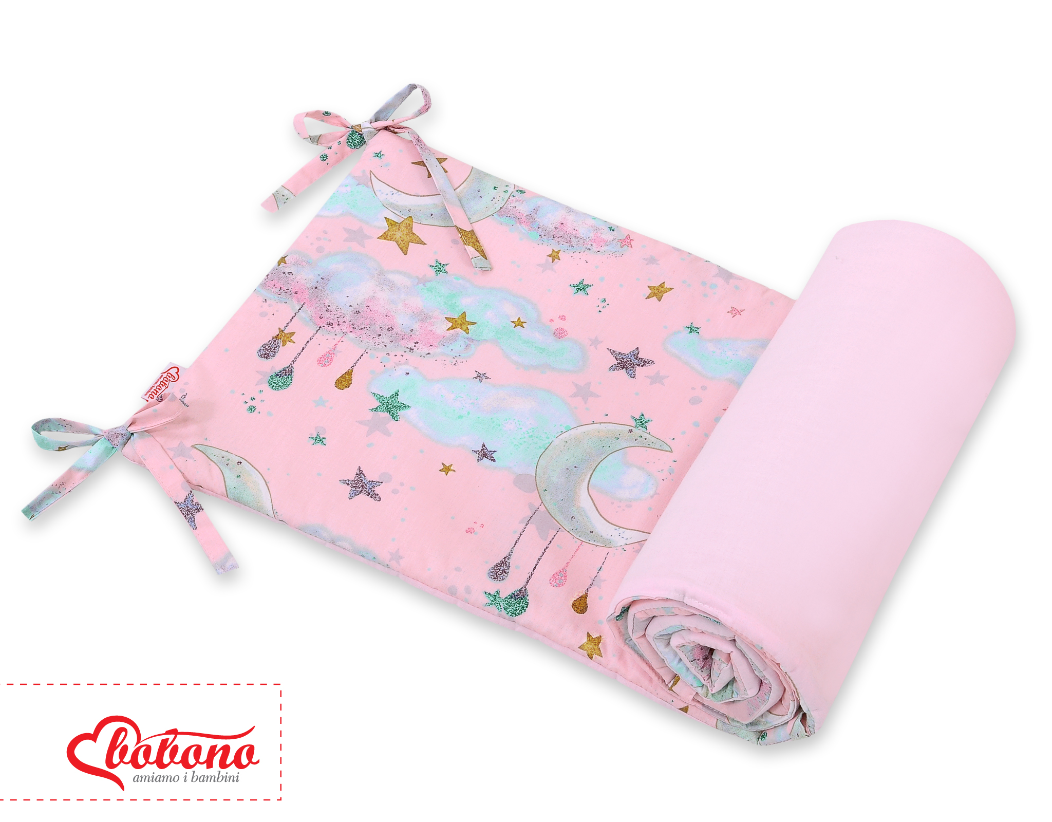 Universal Bettumrandung für Babybett - Monde rosa Ein universal, atmungsaktiver Kopfschutz für Kinderbett. Schafft mit der passenden Bettwäsche eine behagliche Schlafhöhle.