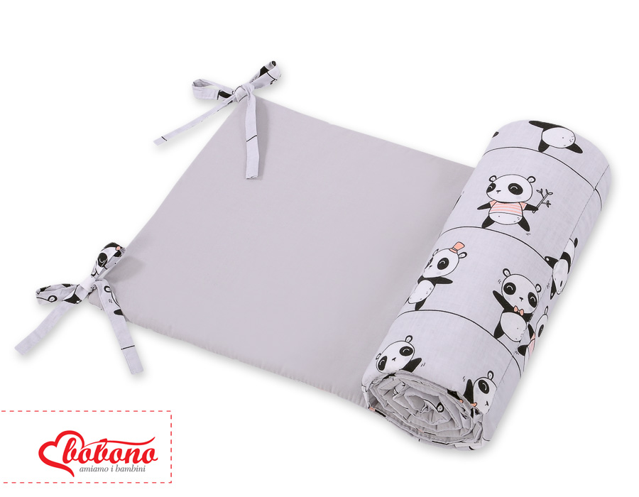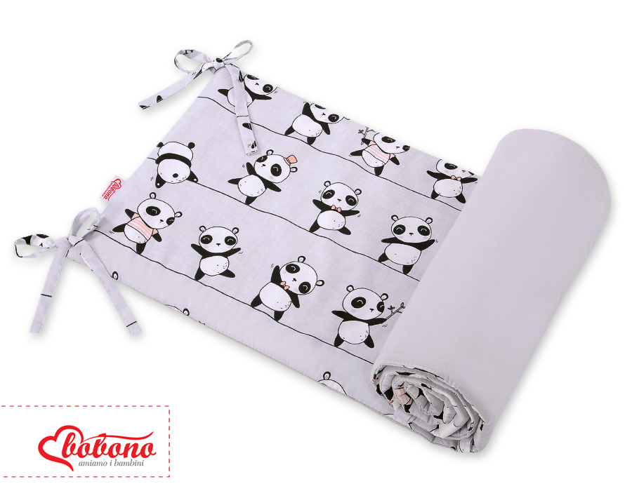 Universal Bettumrandung für Babybett - Panda grau Ein universal, atmungsaktiver Kopfschutz für Kinderbett. Schafft mit der passenden Bettwäsche eine behagliche Schlafhöhle.