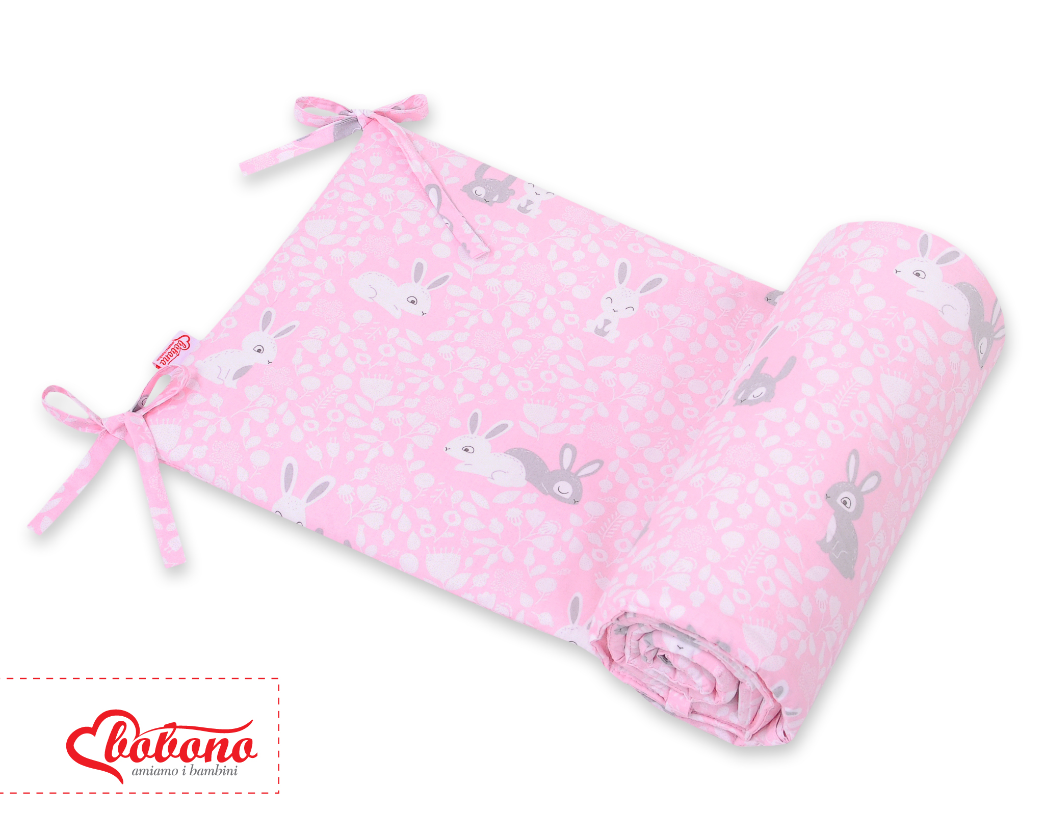 Universal Bettumrandung für Babybett - rosa rabbits Ein universal, atmungsaktiver Kopfschutz für Kinderbett. Schafft mit der passenden Bettwäsche eine behagliche Schlafhöhle.