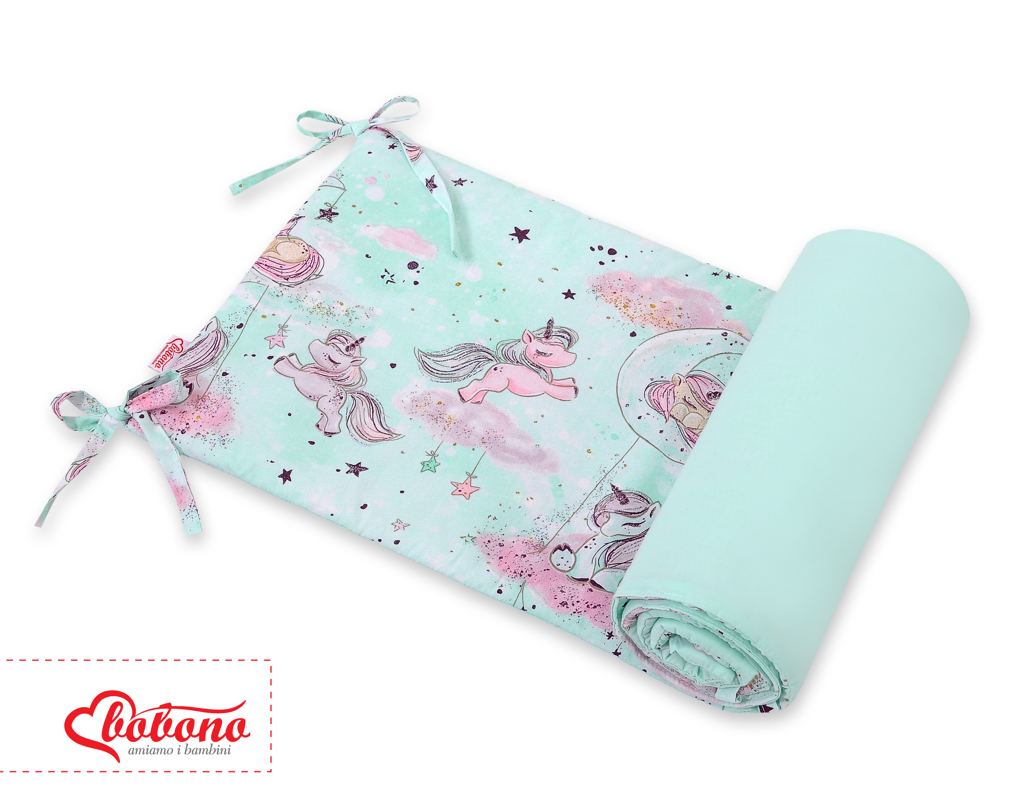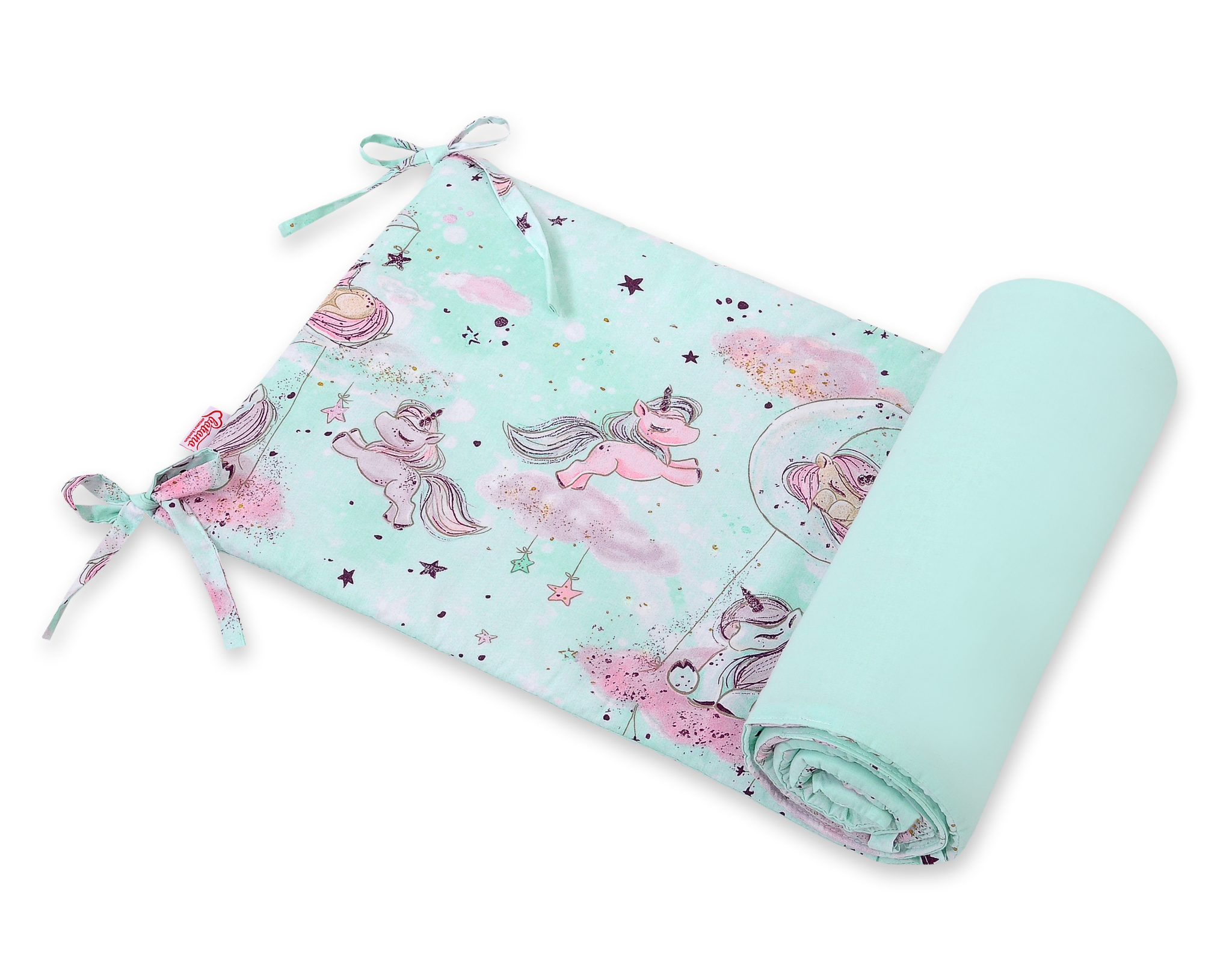 Universal Bettumrandung für Babybett - unicorn mint Ein universal, atmungsaktiver Kopfschutz für Kinderbett. Schafft mit der passenden Bettwäsche eine behagliche Schlafhöhle.