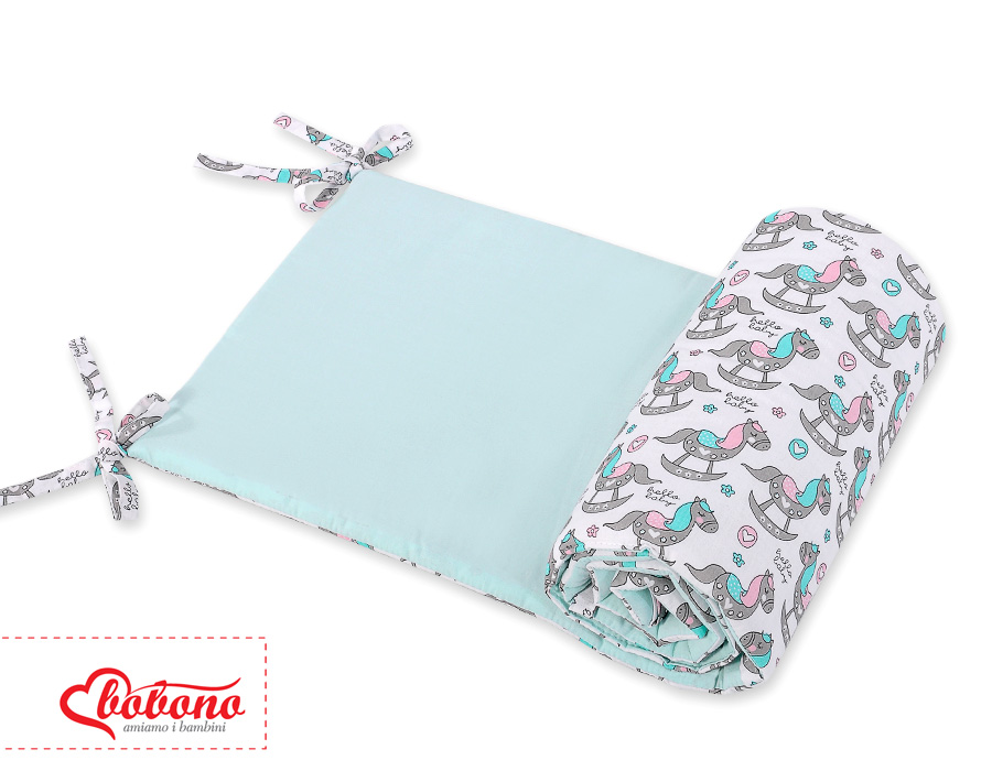 Universal Kopfschutz für Babybett - Schaukelpferde Ein universal, atmungsaktiver Kopfschutz für Kinderbett. Schafft mit der passenden Bettwäsche eine behagliche Schlafhöhle.