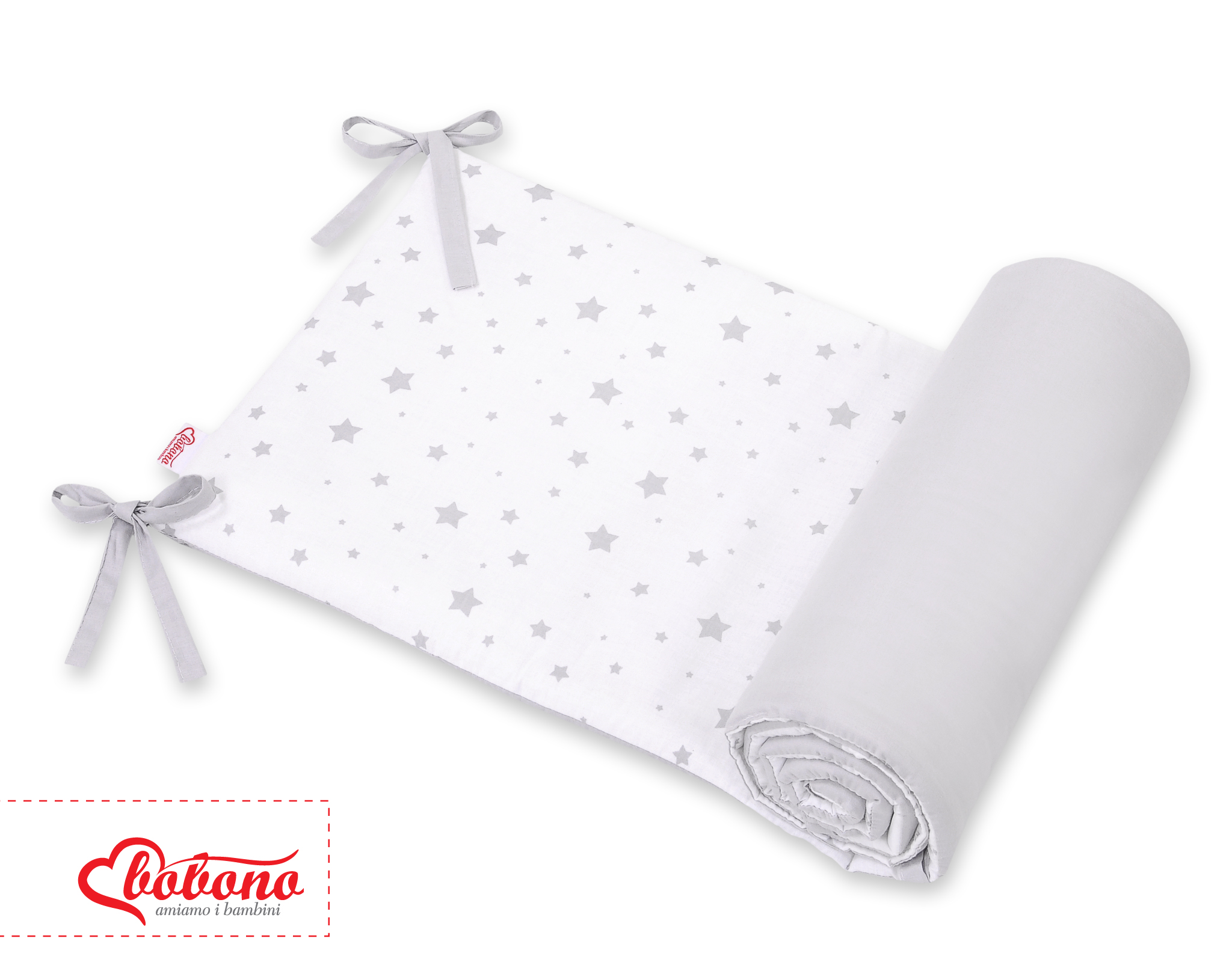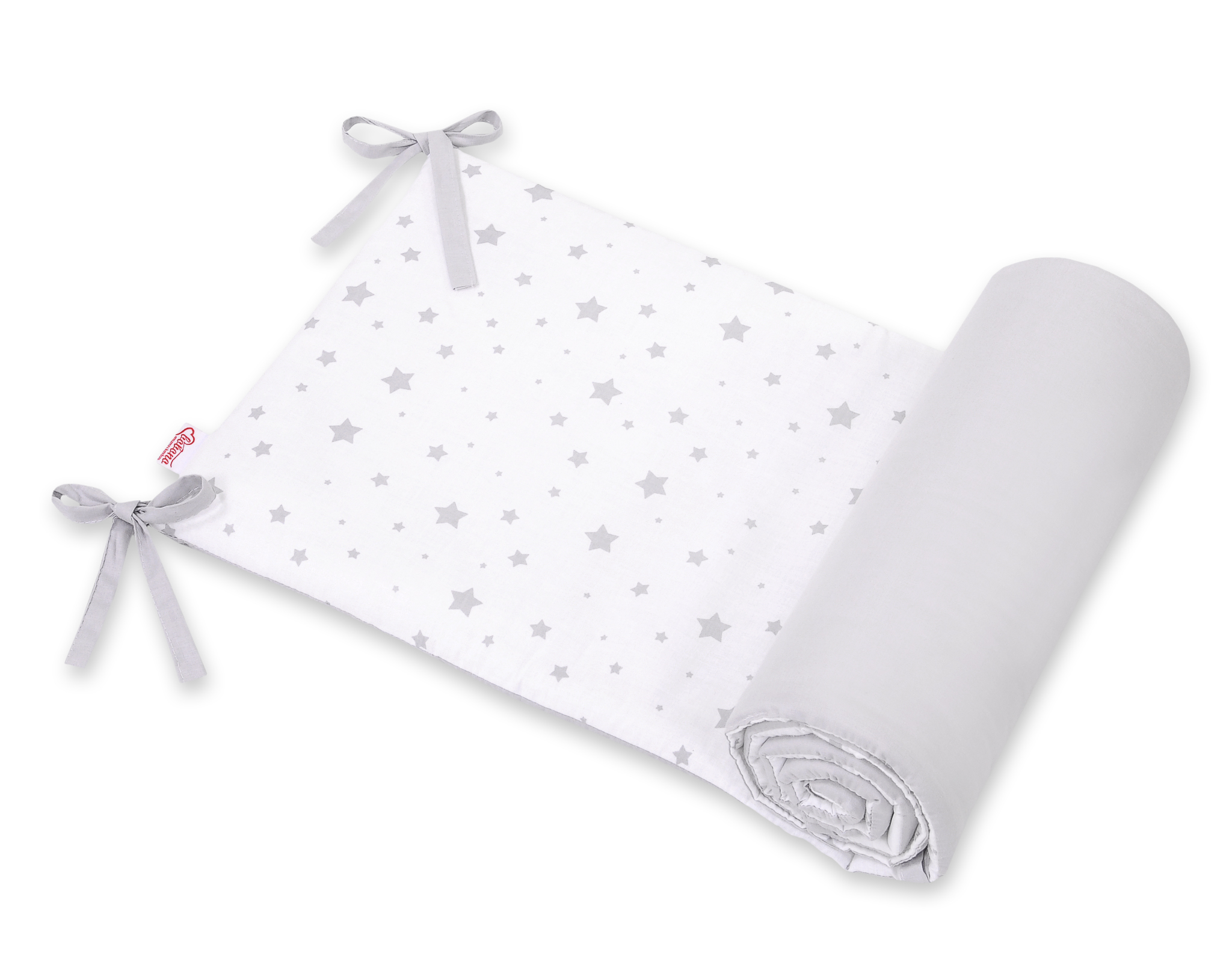 Durch seine zusätzlichen Seitennähte passt er sowohl auf ein Bettchen 120x60 als auch 140x70 cm. Der Kopfschutz ist mit einer dicken, antialergischen, atmungsaktiven Silikongewebeschicht gepolstert. Die Füllung besitzt den Ökotex Zertifikat. An das Bettchen wird er mit soliden Schleifchen befestigt.