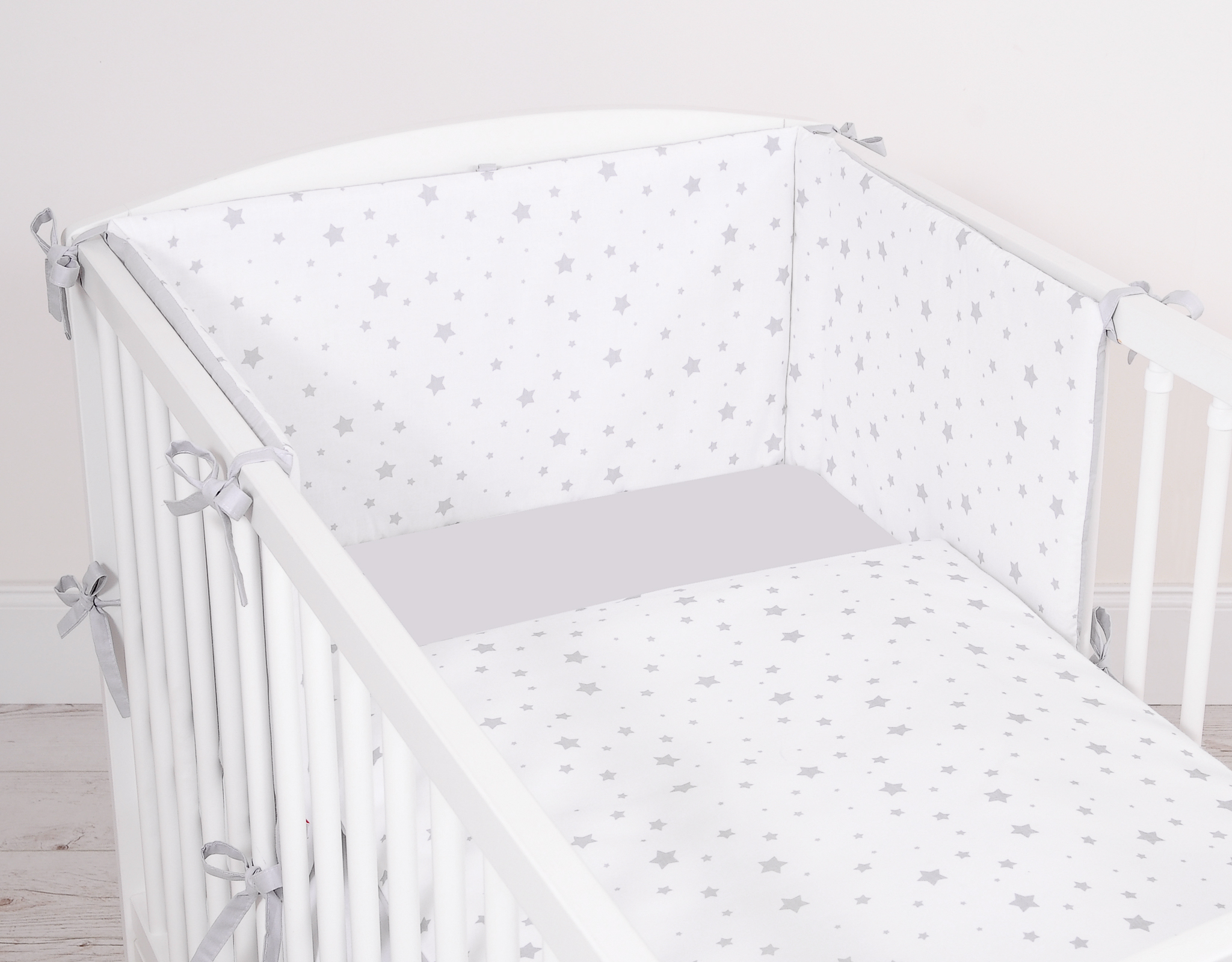 Grau Grau Sternchen Mini Babybett Kopfschutz Doppelseitig Universal