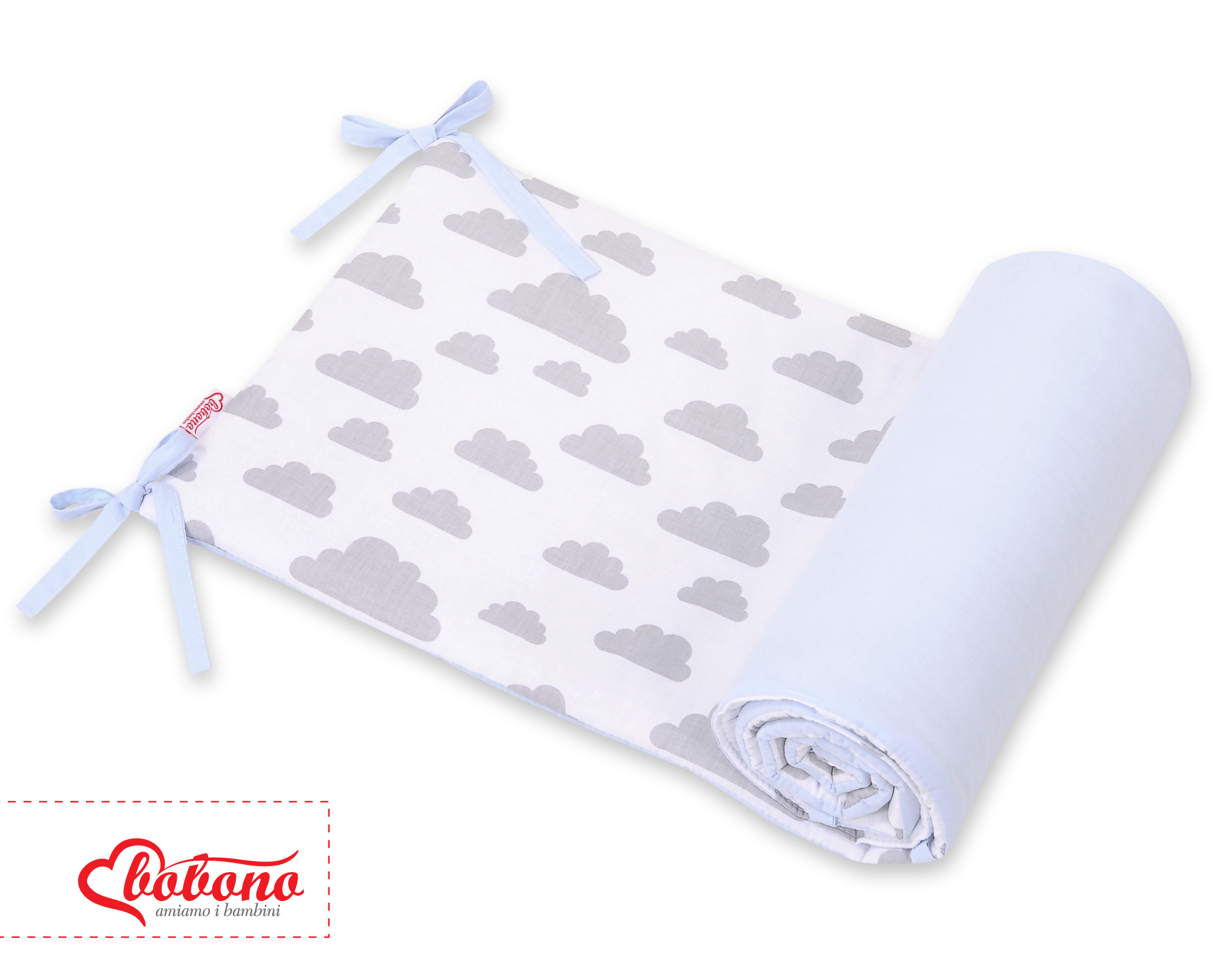 Universal doppelseitig Kopfschutz für Kinderbett - Wolken grau/blau Ein universal, atmungsaktiver Kopfschutz für Kinderbett. Schafft mit der passenden Bettwäsche eine behagliche Schlafhöhle.