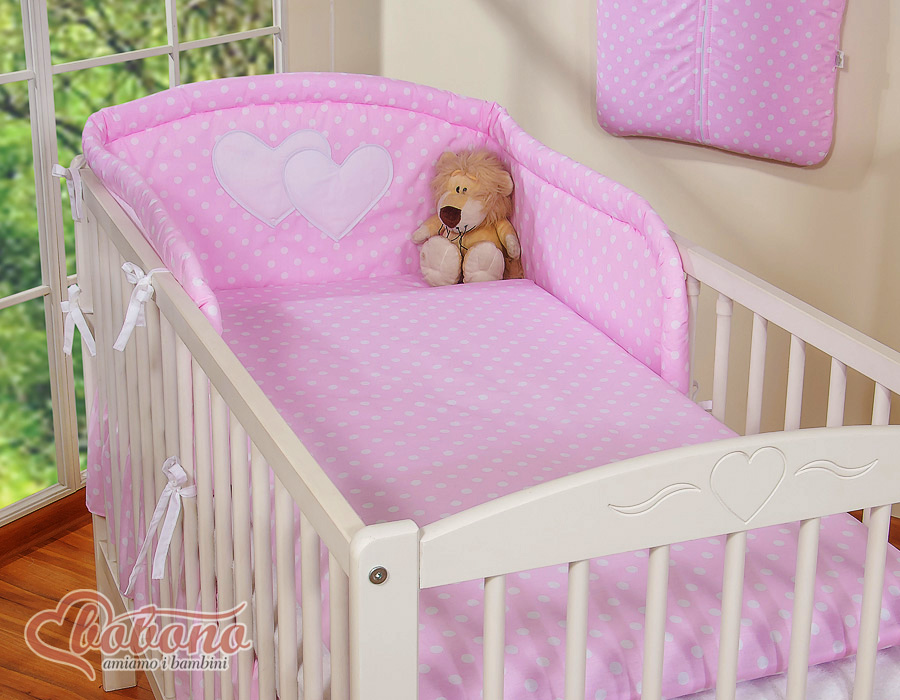 Universal Kopfschutz für Babybett 60x120cm und 70x140cm - Hängende Herzen Rosa-Punktemuster
