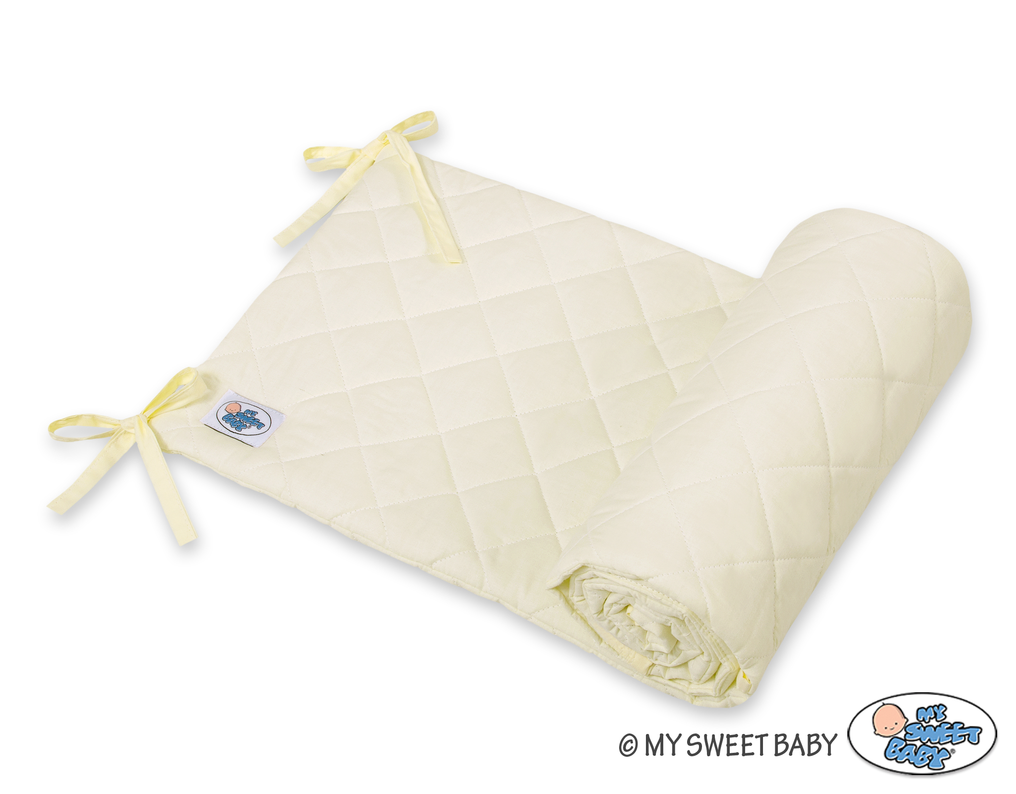 Universal Kopfschutz gesteppt - durch seine zusätzlichen Seitennähte passt er sowohl auf ein Bettchen 120x60 als auch 140x70 cm.