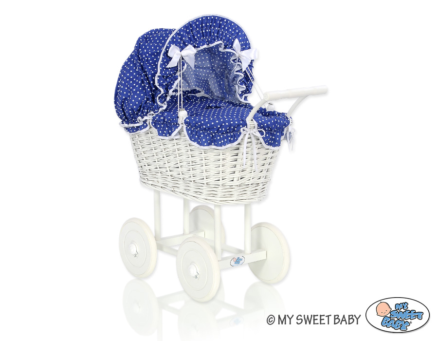 Stubenwagen » Spielzeug Kuscheltiere » Puppenwagen und Spielzeug » Puppenwagen aus Weide » Vintage Puppenwagen für Mädchen Bettwäsche Marineblau Punktmuster nr 71699-380
