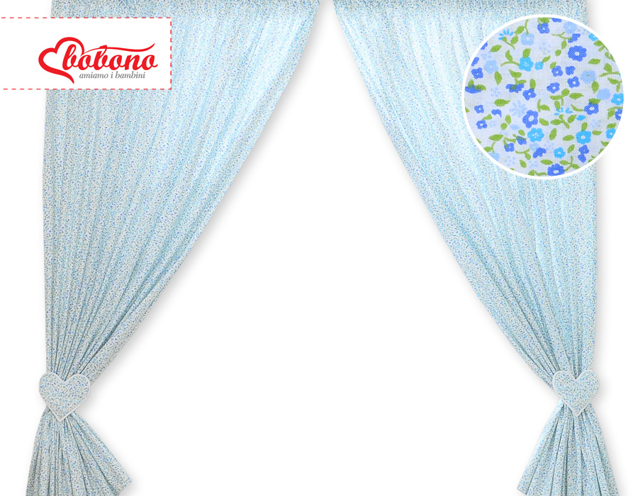 Vorhänge für Kinderzimmer - Hängende Herzen blaue Blümchen