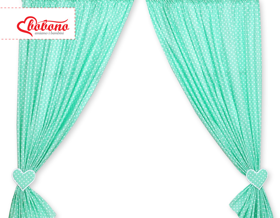 Vorhänge für Kinderzimmer - Hängende Herzen Minze mit Punktemuster