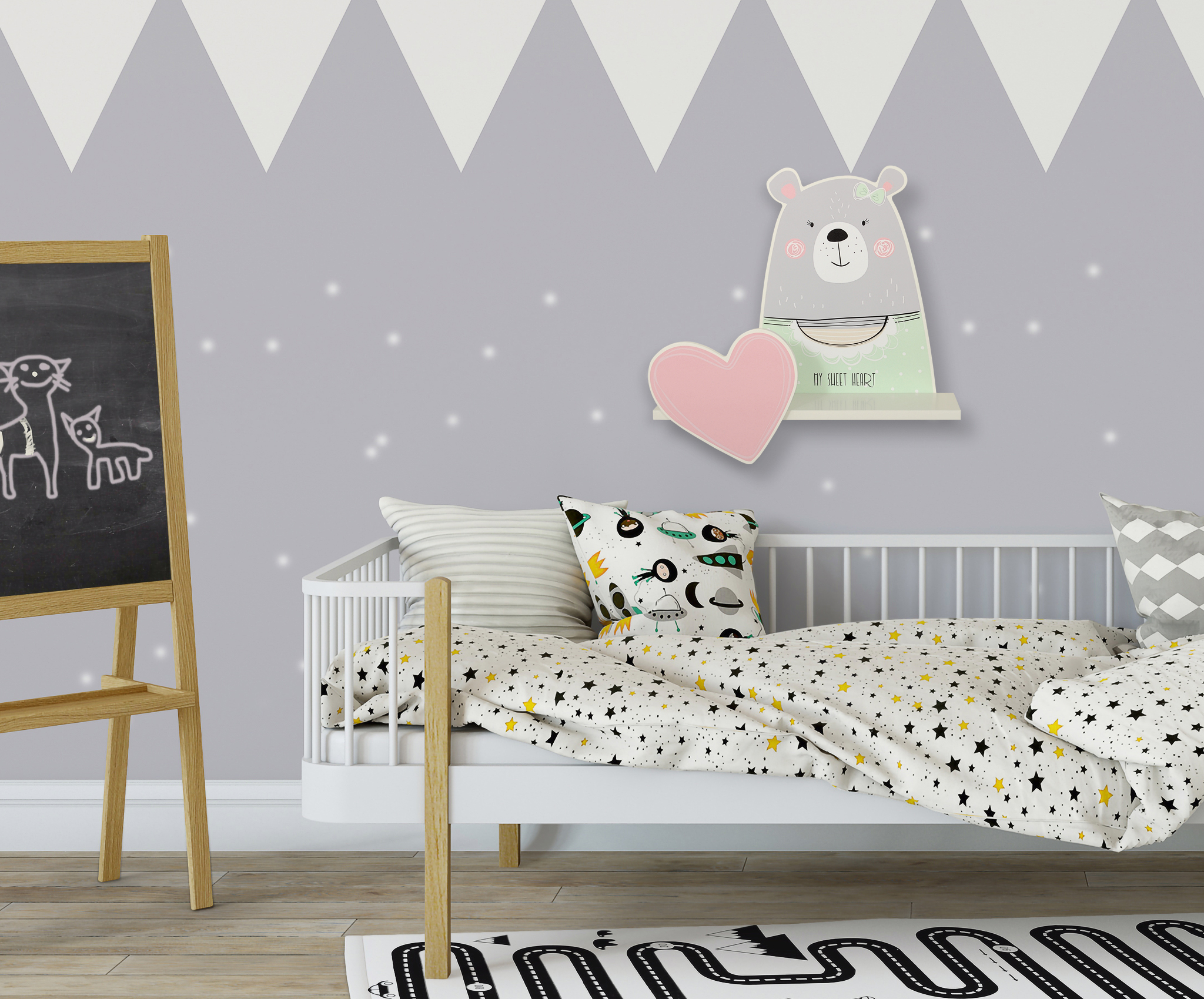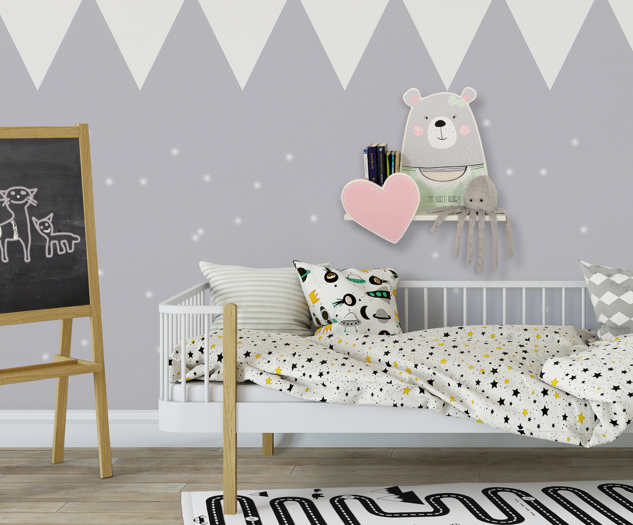 Stubenwagen » Babybett 60x120 cm » Wandregale » Wandregal für das Kinderzimmer - Teddybär- Girl