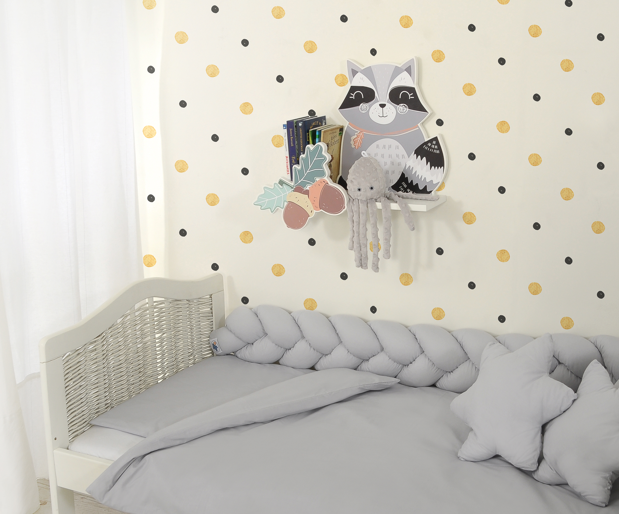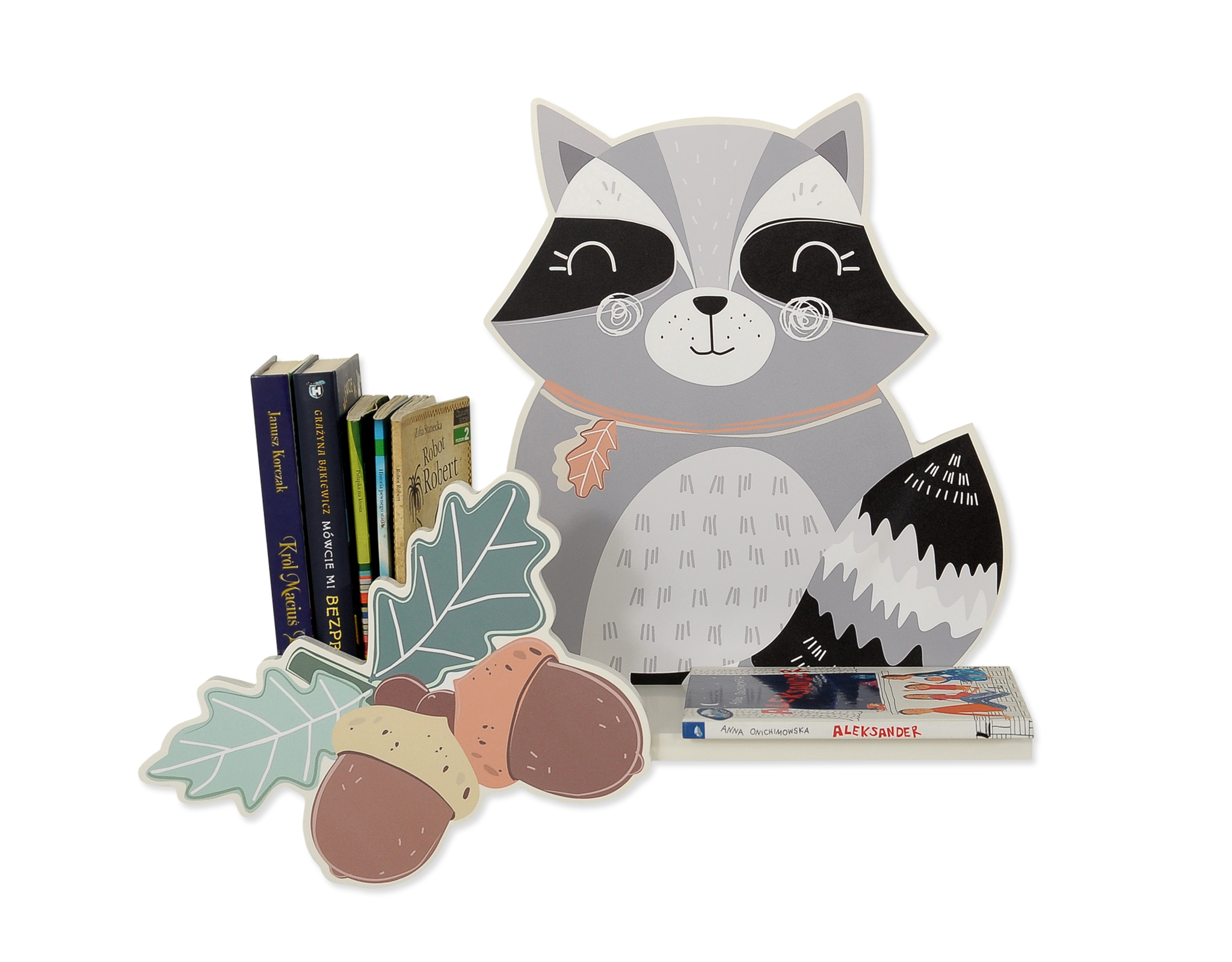 (Sicher für Spielzeug). Die Farbe ist Widerstandsfähig gegen Splitter und Kratzer. Die Rückseite des Regals ist mit bunten Originalgrafiken verziert. Auf der Vorderseite das zusätzliche Element ist auch mit bunten Grafiken verziert, die zusätzlich zur Dekoration dient und sichert Bücher oder anderes Spielzeug.