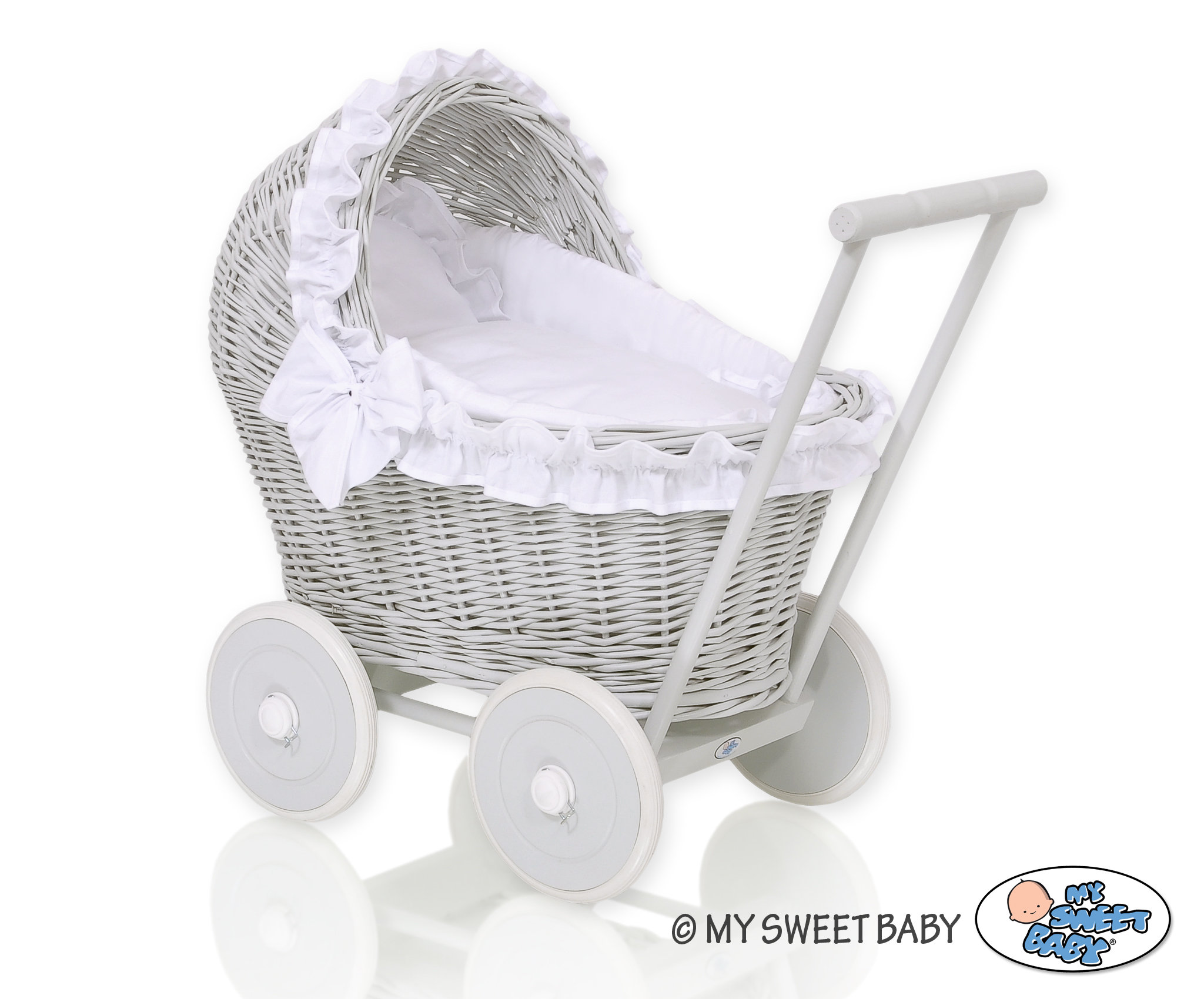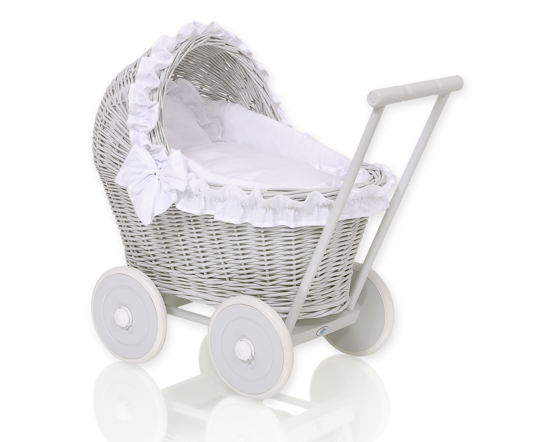 Stubenwagen » Spielzeug Kuscheltiere » Puppenwagen und Spielzeug » Puppenwagen aus Weide » Weide Grau Puppenwagen Bettwäsche Weiß nr 61702-516