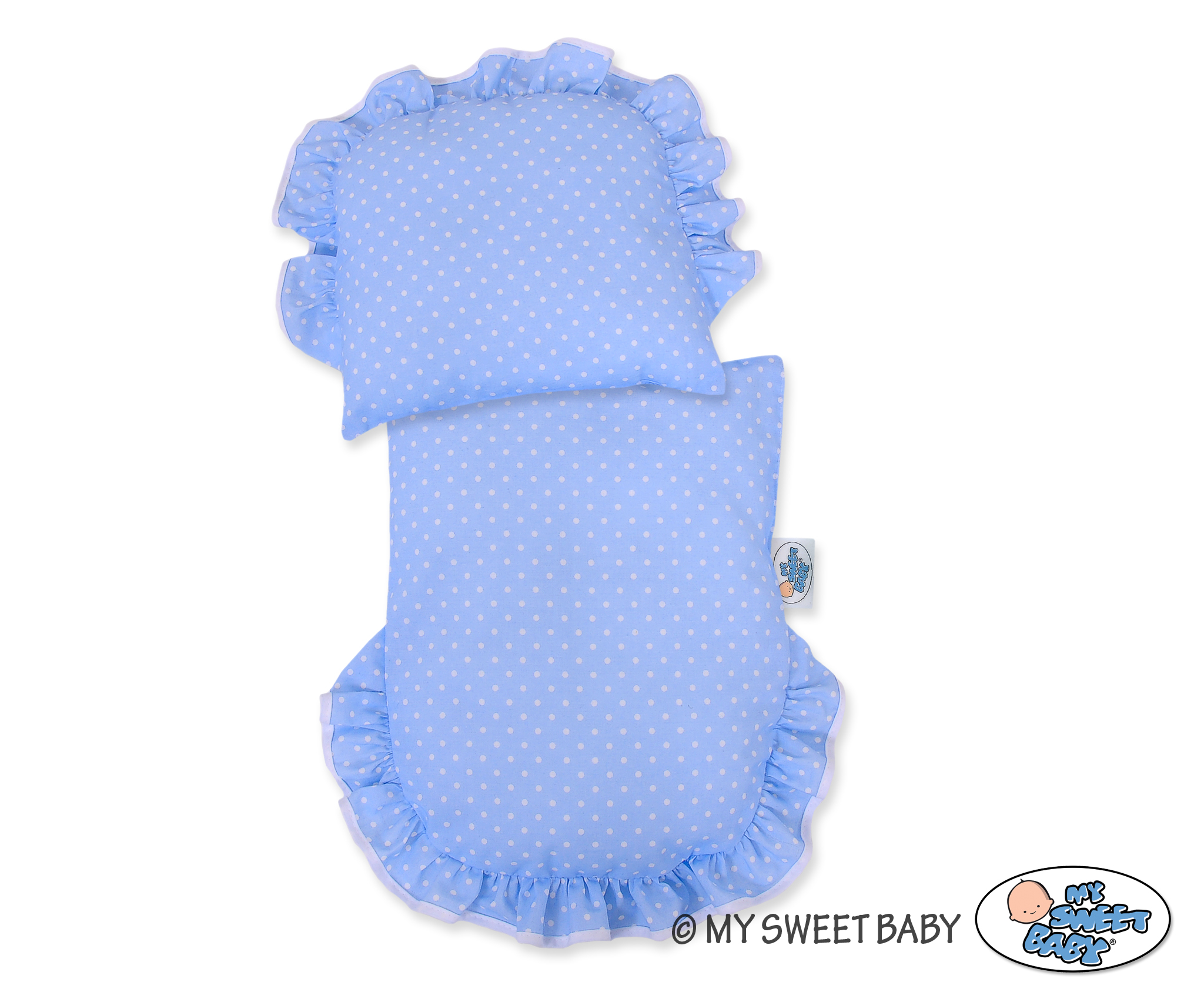 Weide Puppenwagen Bettwäsche Blau mit Weiß Punktmuster nr 1702-588