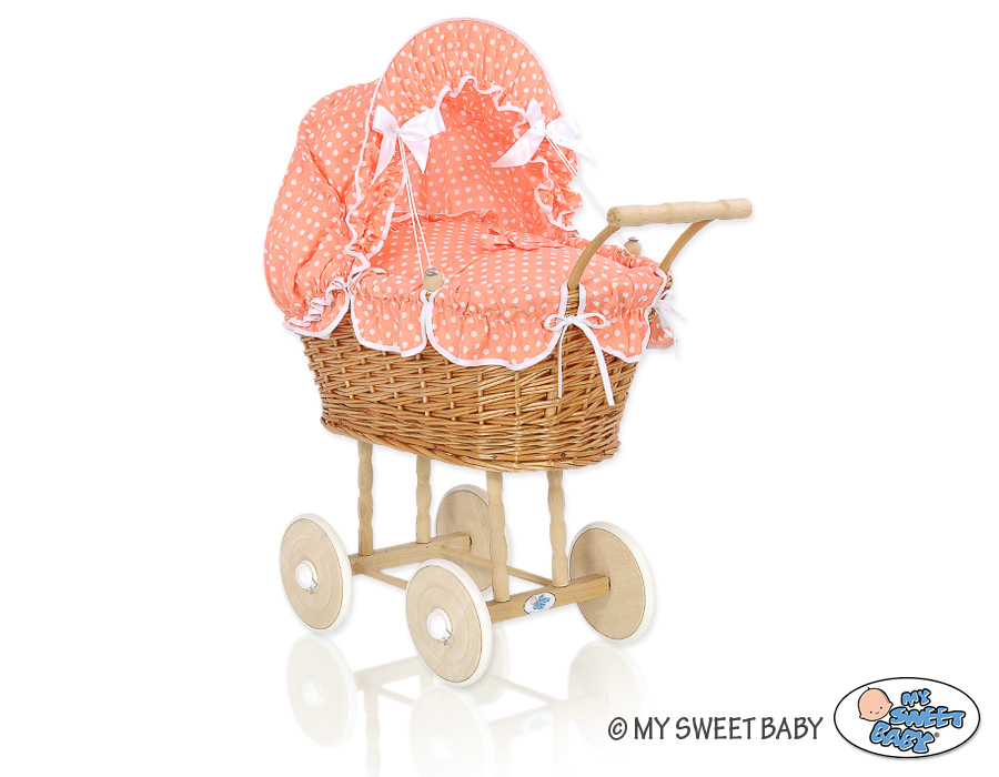 Stubenwagen » Spielzeug Kuscheltiere » Puppenwagen und Spielzeug » Puppenwagen aus Weide » Weide Puppenwagen Bettwäsche Pfirsich Punktmuster nr 1699-761