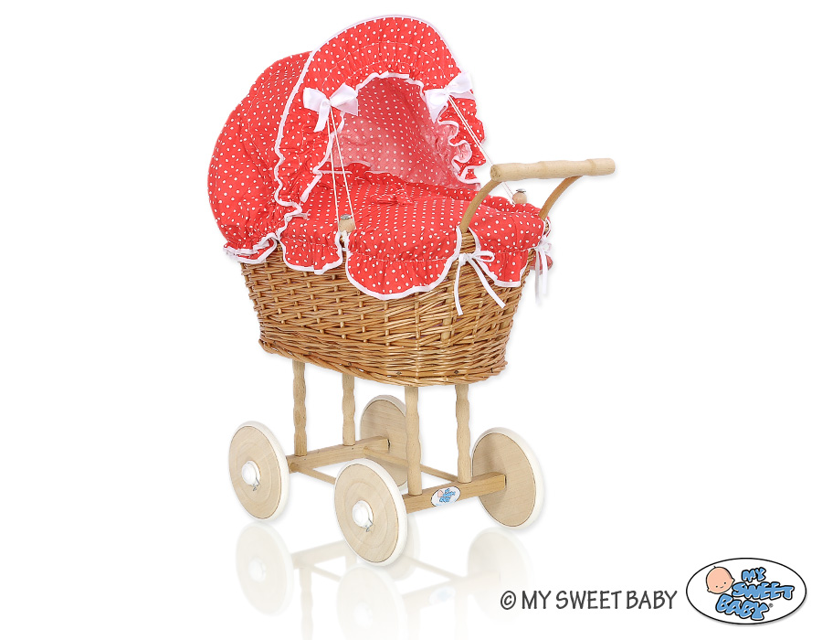 Stubenwagen » Spielzeug Kuscheltiere » Puppenwagen und Spielzeug » Puppenwagen aus Weide » Weide Puppenwagen Bettwäsche Rot mit Punktmuster nr 1699-763