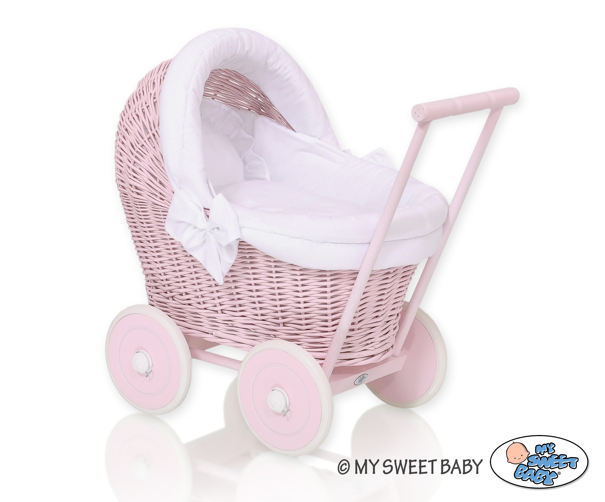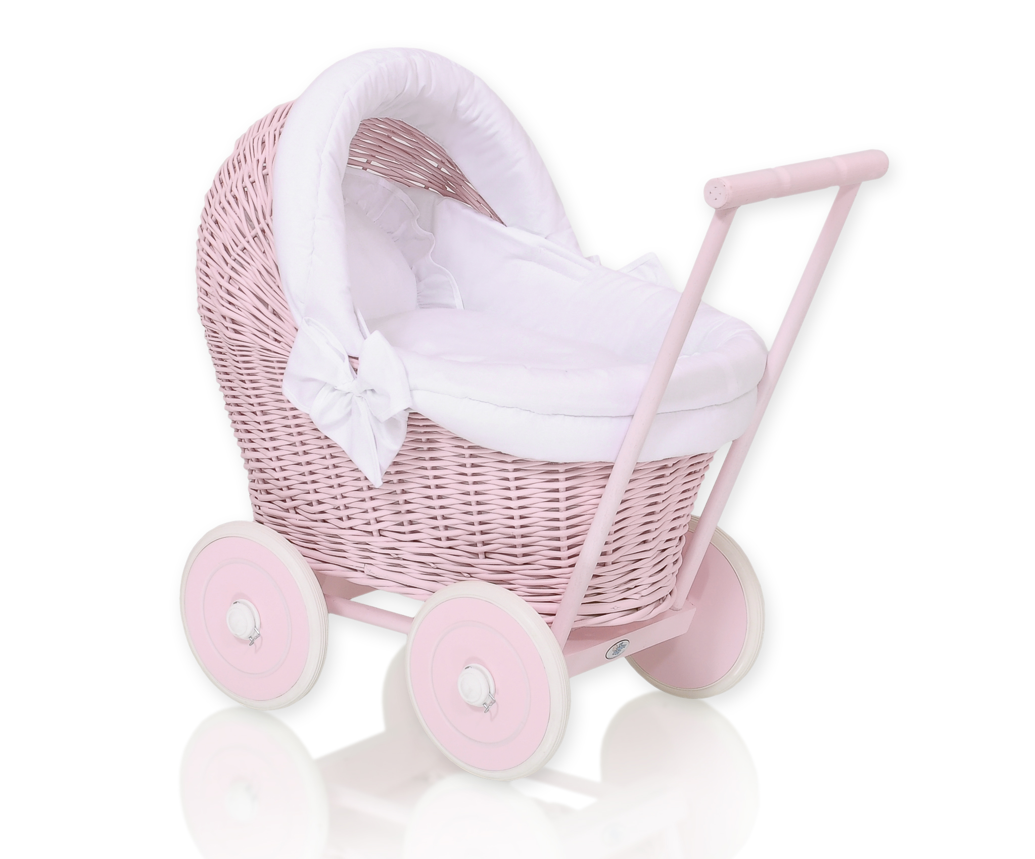 Stubenwagen » Spielzeug Kuscheltiere » Puppenwagen und Spielzeug » Puppenwagen aus Weide » Weide Rosa Puppenwagen Bettwäsche Weiß nr 81703-516