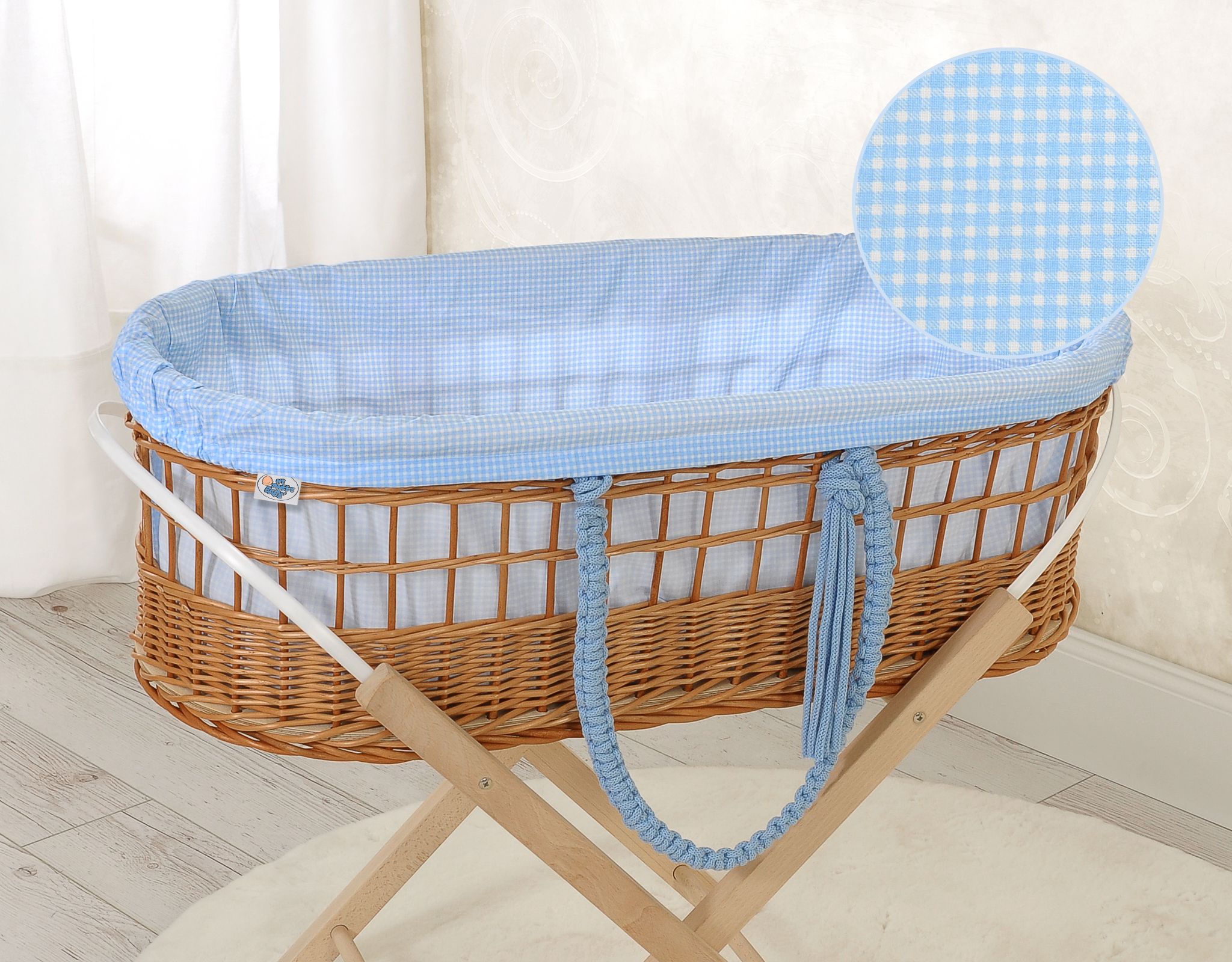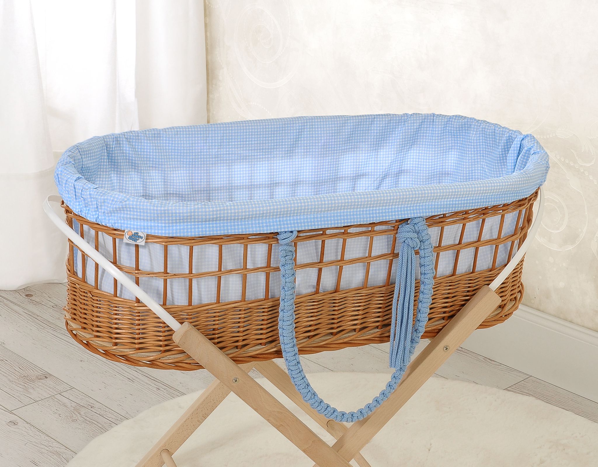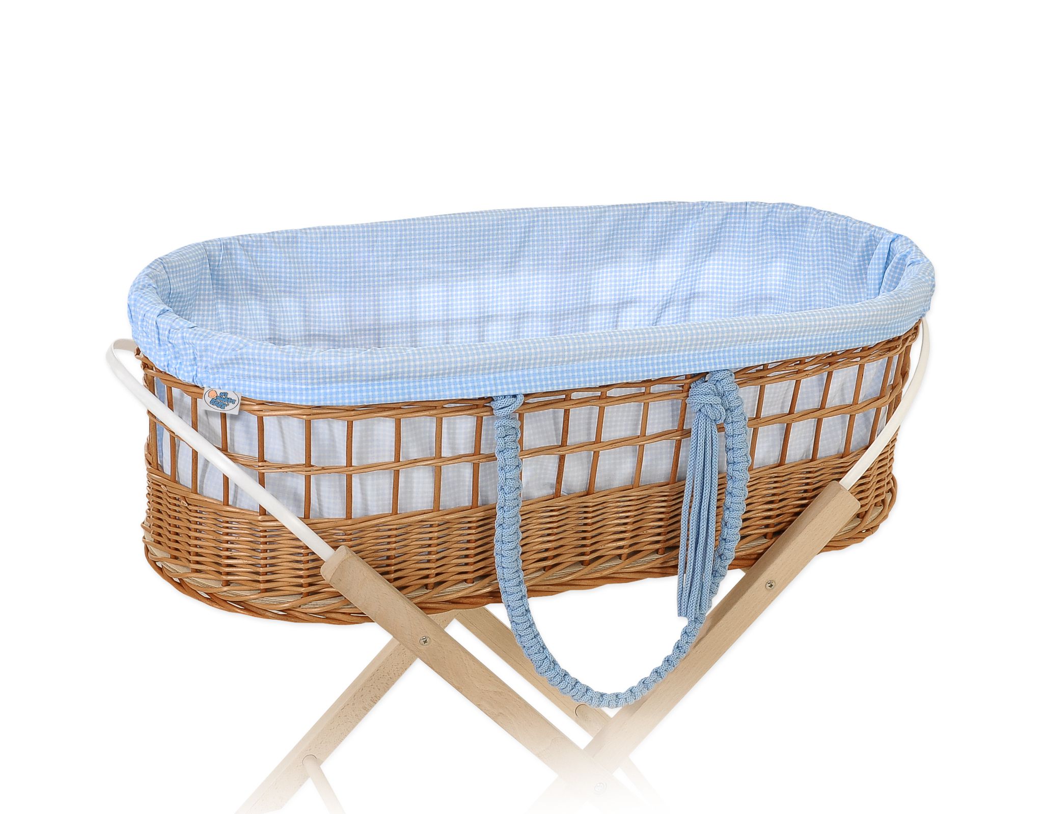 Stubenwagen » Stubenwagen » Moseskorb Boho » Weidenkorb im Boho-Stil für Babys Baumwolle Polsterung - blau kariert