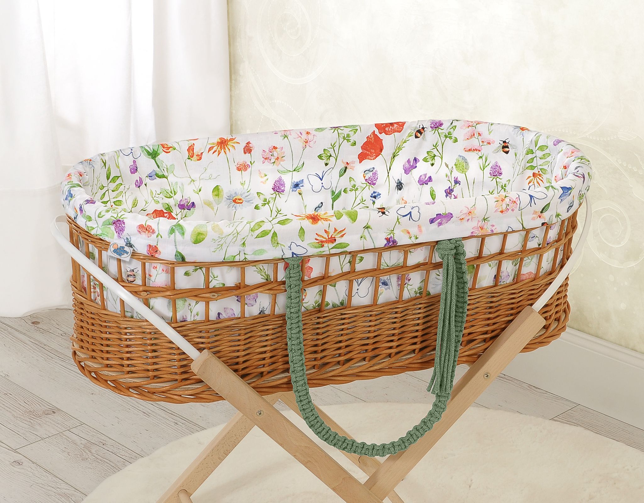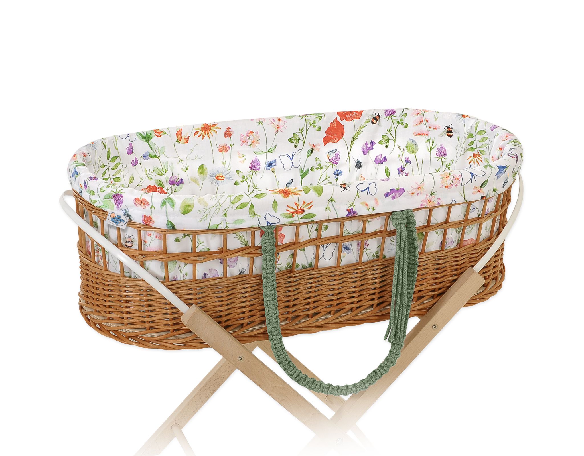Eine zusätzliche Verzierung des Moseskorbs sind die handgeflochtenen Makramee-Kordelgriffe. Die langen, bequemen Griffe mit zusätzlichem Zierbügel. Die Griffe sind farblich auf das Innenfutter des Moseskorbs abgestimmt. Dank der Griffe lässt sich das Bettchen leicht tragen, so dass Sie Ihr Kind immer in Ihrer Nähe haben.
