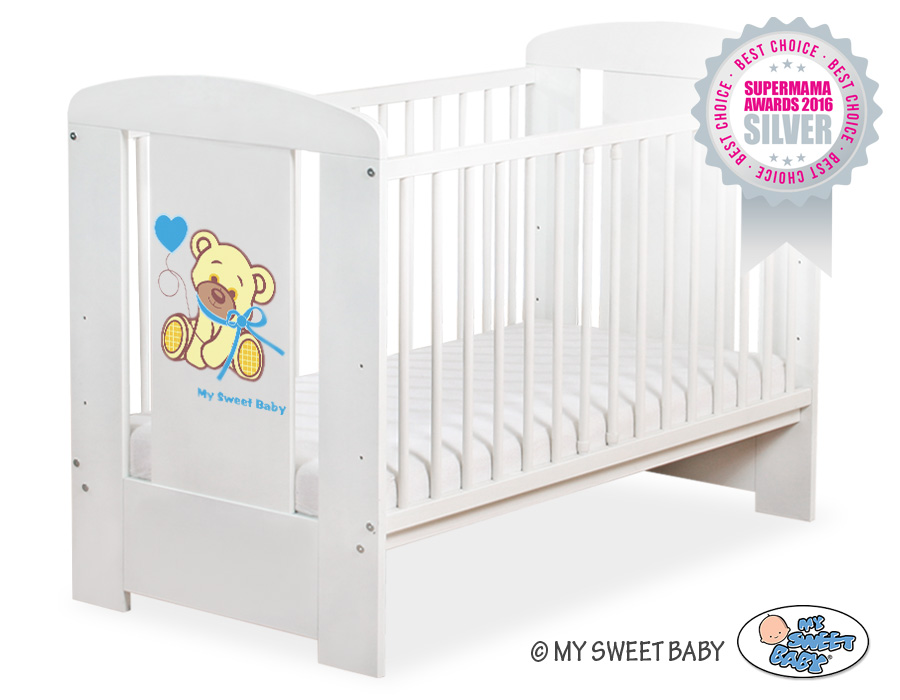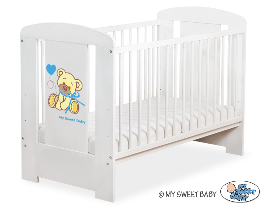 Stubenwagen » Babybett 60x120 cm » Babybett 60x120 Bär mit Schleife » Weiß Gitterbett 120x60cm Bär mit Schleife blau nr 5004-07-323