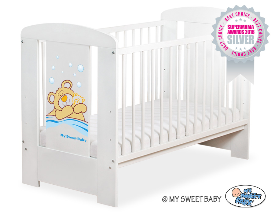 Stubenwagen » Babybett 60x120 cm » Babybett 60x120 Teddy Bär Barnaba » Weiß Gitterbett 120x60cm Teddy Bär Barnaba nr 5005-07-803