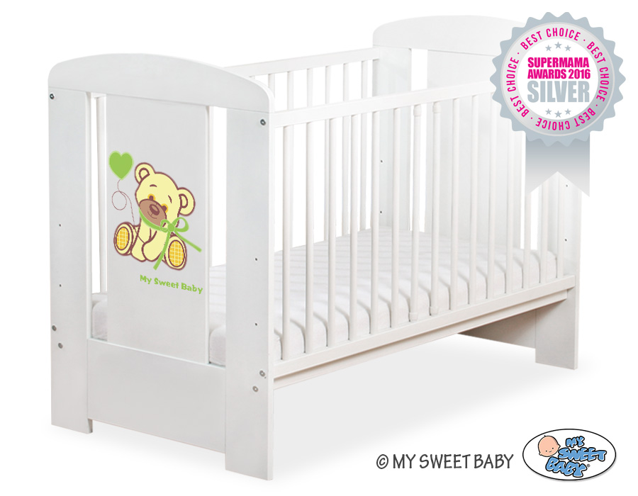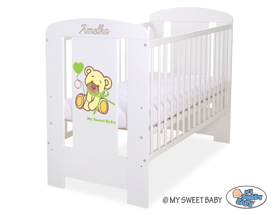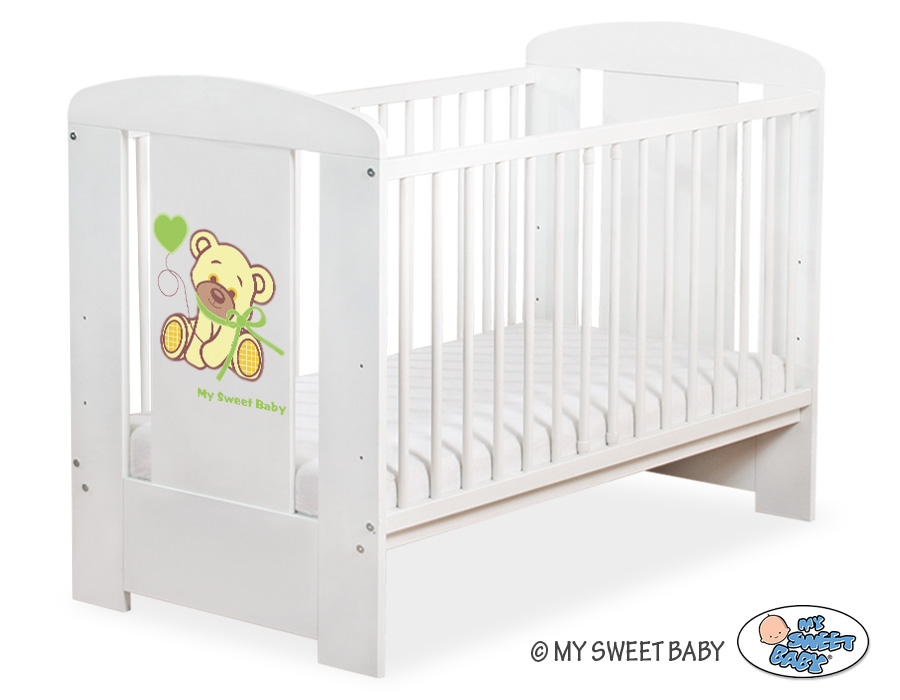 Stubenwagen » Babybett 60x120 cm » Babybett 60x120 Bär mit Schleife » Weiß Kinderbett 120x60cm Bär mit Schleife grün nr 5004-07-322