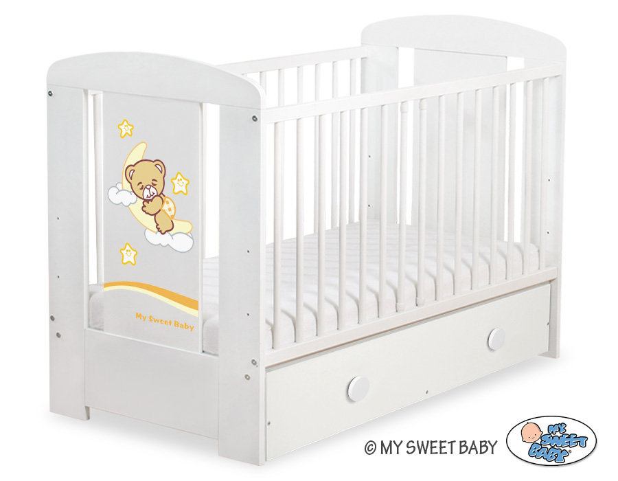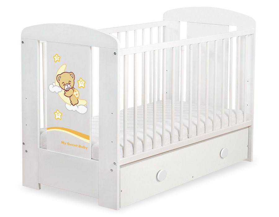 Stubenwagen » Babybett 60x120 cm » Babybetten 120x60cm mit Schublade » Babybett mit Schublade 60x120 Gute Nacht » Weiß Kinderbett 120x60cm Gute Nacht Creme mit Schublade MAXI
