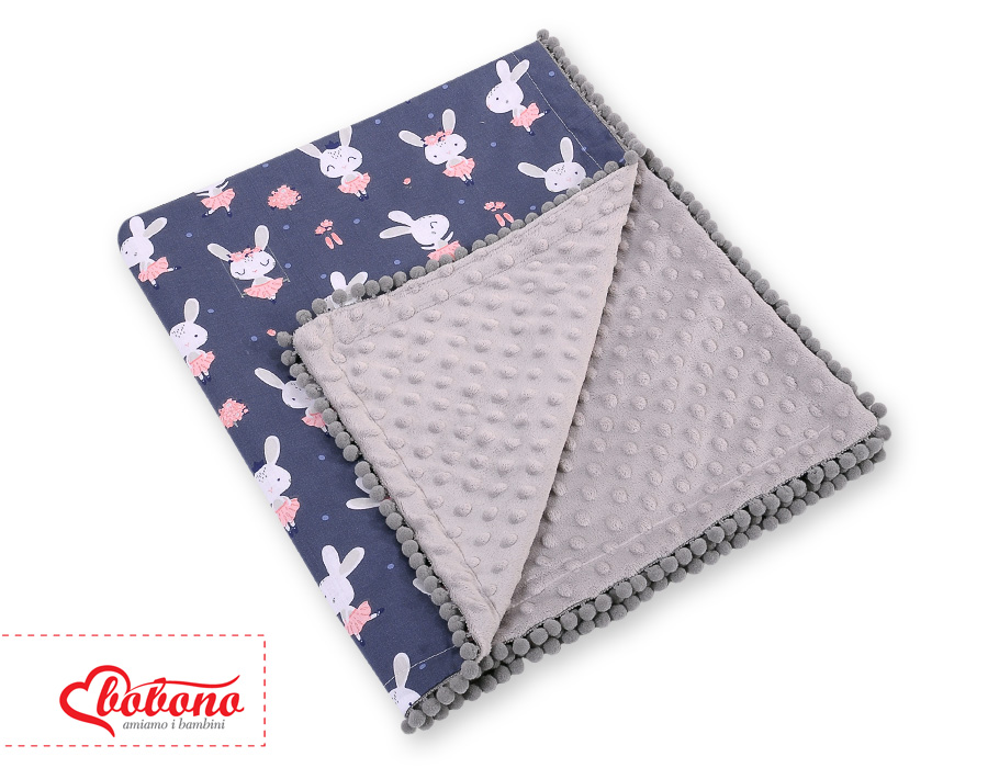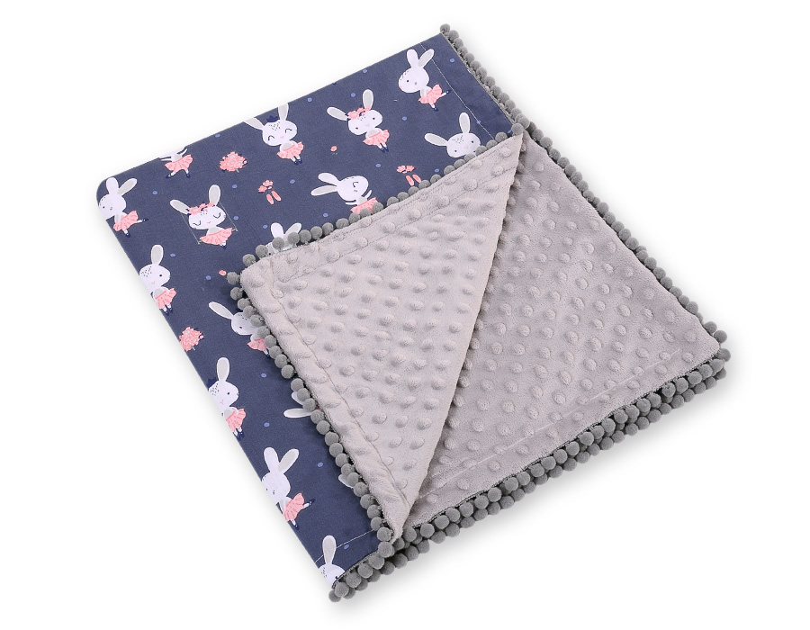 Hasen Blaue Minky) (mit Pompoms Doppelseitig Wendedecke