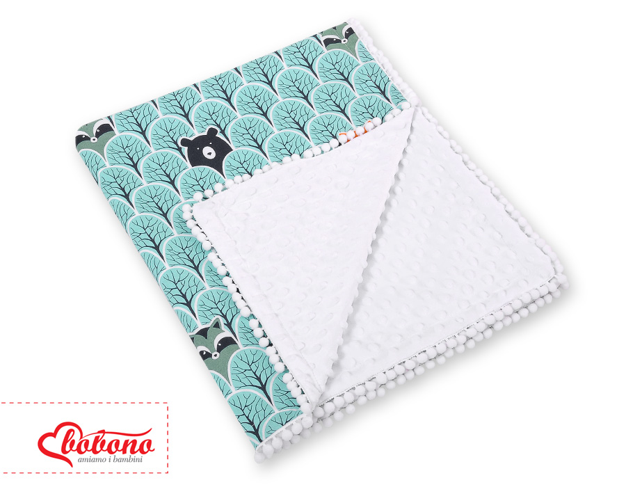 Stubenwagen » Bettwäsche für Babys » Bettwäsche für Babybett FUN & JOY » Wendedecke doppelseitig mit Pompons (mit Minky) » Wendedecke doppelseitig mit Pompoms (mit Minky) - Minze Bäume