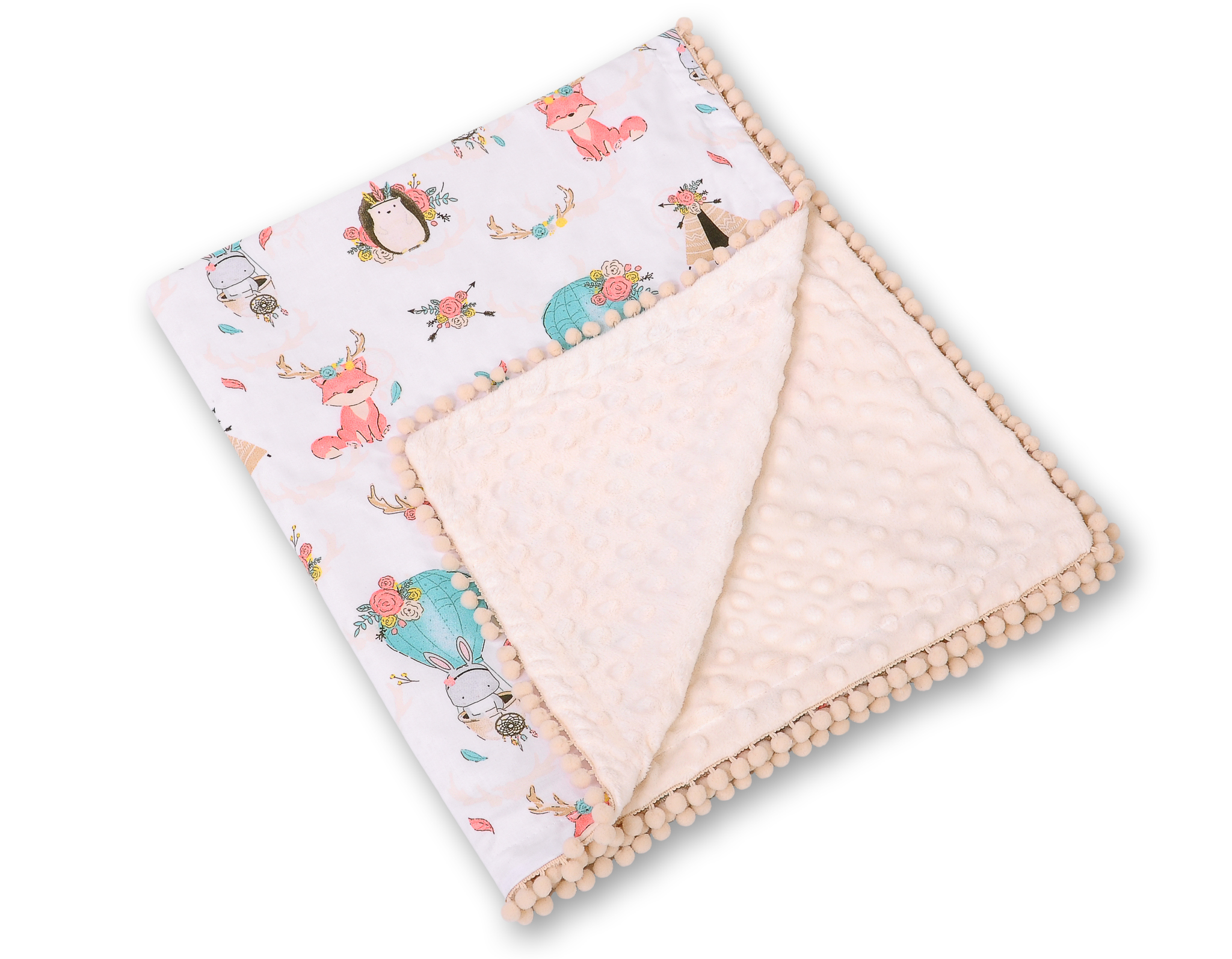 Wendedecke doppelseitig mit Pompons - Füchse beigeWendedecke doppelseitig mit Pompons - Füchse beige